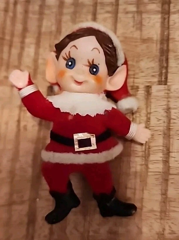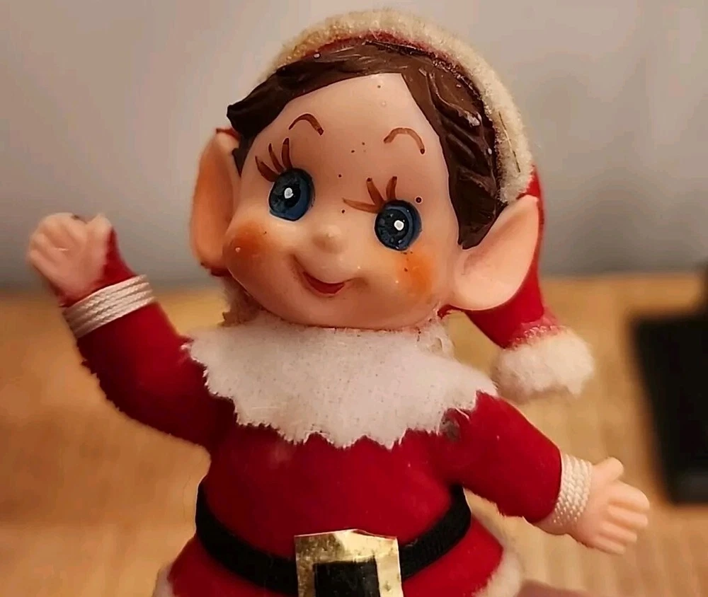 This vintage ornament set features a Santa adorned with beads and sequins, creating a festive and whimsical look and a Elf flocked red mid century Pixie made in Taiwan. The ornaments are 3" and 4" in size and depict classic holiday characters from the 1950's-1960's. The Santa and Elf figures are part of the Christmas-themed collection and would be a charming addition to any room during the holiday season. This ornaments set captures the nostalgic charm of mid-century holiday decor. All sales are final.