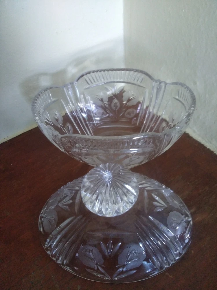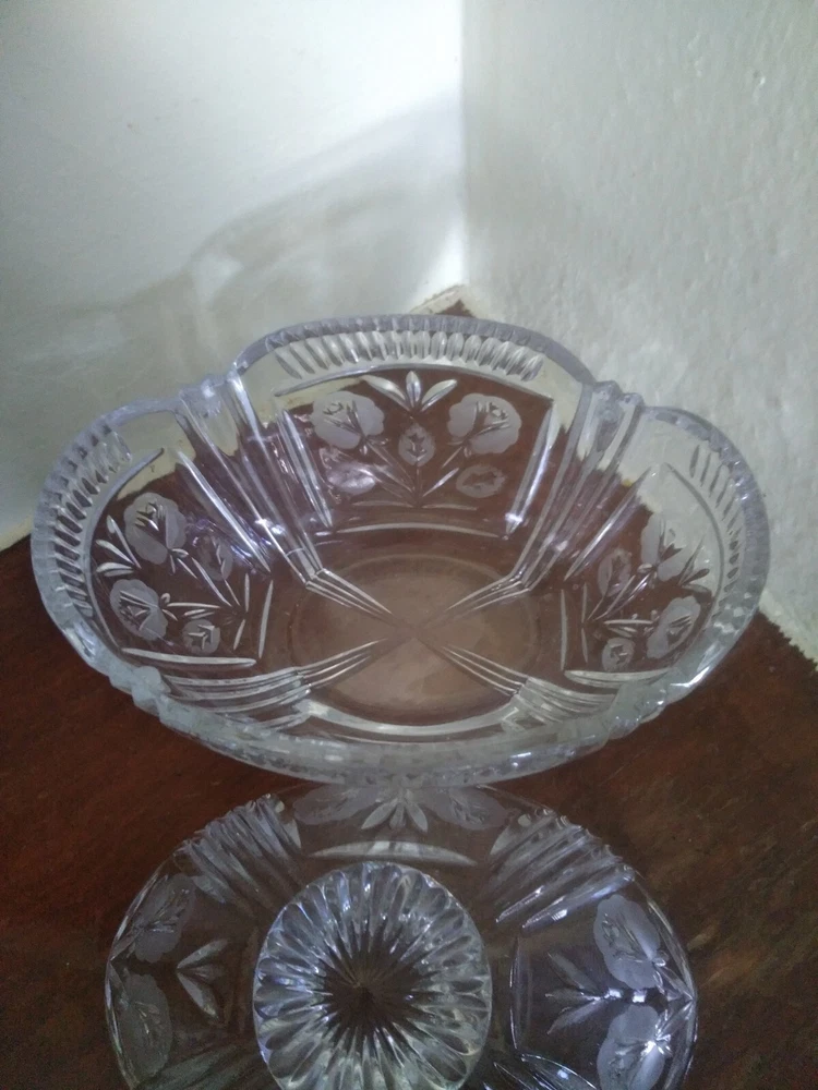 Vintage Crystal Glass Candy dish With Lid Floral Design.