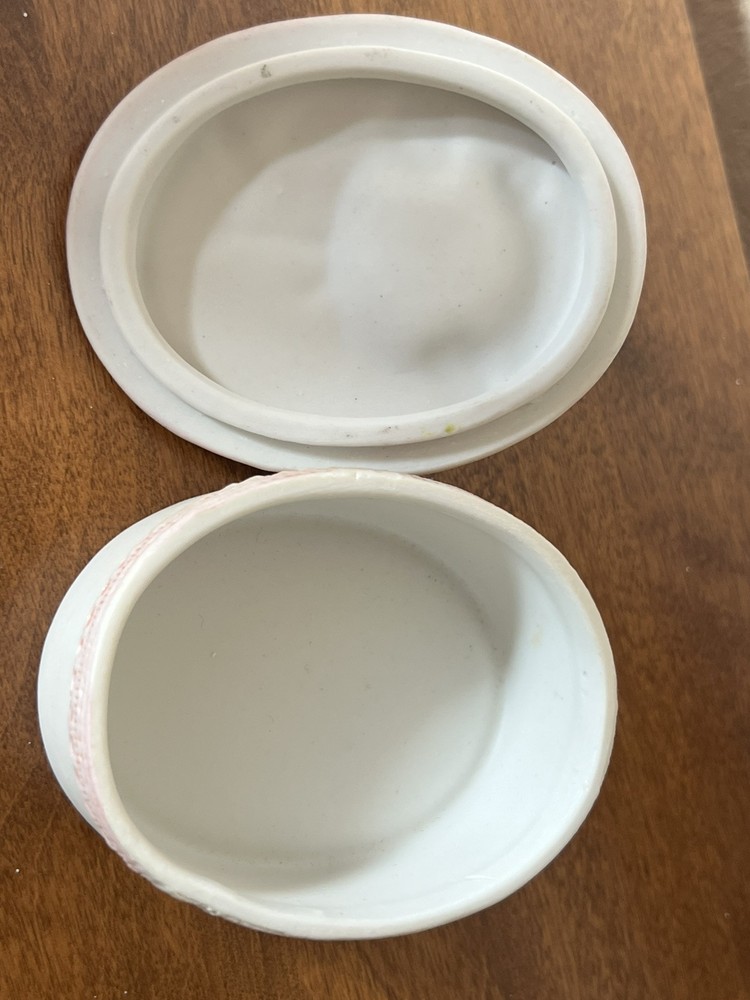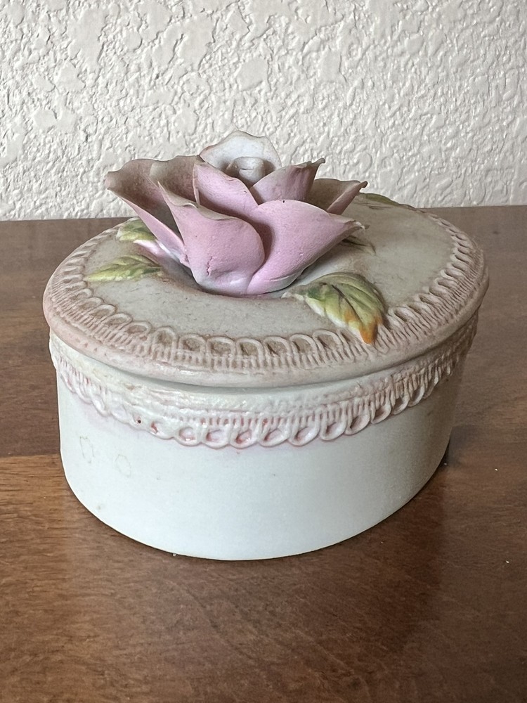 vintage porcelain jewelry box oval shape applied rose pattern