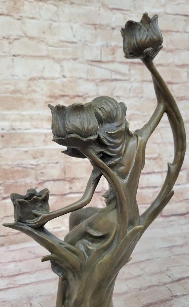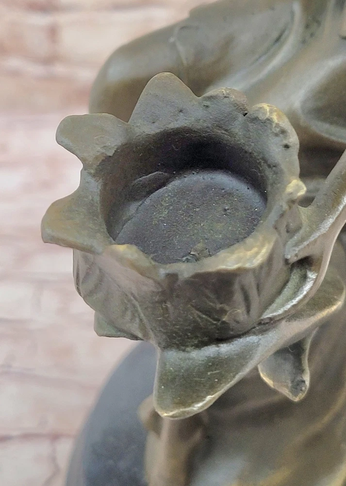 VINTAGE FRENCH EMPIRE BRASS BRONZE KASSIN CANDLE HOLDER CANDELABRA HOT CAST ART VINTAGE FRENCH EMPIRE BRASS BRONZE KASSIN CANDLE HOLDER CANDELABRA HOT CAST ART Condition : sculpture is perfect condition Bronze Dimensions with Marble Base: Height 15" X Width 9" Marble Dimensions: Diameter 5" Height without base:14" Weight:10 LBS Inventor:19YRD13115791 Experience the captivating beauty of our exquisite bronze candle holder, a stunning depiction of a woman in a moment of relaxation. With one hand gracefully behind her and wiping the sweat from her forehead, she exudes a sense of inner beauty and tranquility. Dressed in a flowing robe that elegantly hugs her legs up to her thigh, the sculpture showcases intricate details that create a sense of movement and dimension. The robe, bunching at the floor and fanning out around her, adds to the sculpture's allure, and her hips elegantly break up the form, providing the viewer with an additional dimension to appreciate. The flowers in the sculpture cleverly double as candle holders, concealing a charming surprise. Once a candle is lit and placed in the sculpture, the light reflects off the bronze, creating a breathtaking sight that adds ambiance and aesthetics to any room. This exceptionally gorgeous candle holder is not just a functional piece, but also a work of art that elevates the ambiance of your living room or home. Signed by the talented artist J. Kassin, this bronze sculpture is a testament to the artist's skill and vision, making it a prized addition to any collection or decor. Illuminate your space with the grace and elegance of this unique candle holder, turning any moment into a mesmerizing experience. Art Deco Nouveau Bronze Metal Candelabra Candleholder Sculpture Female Figure YRD-1311 bronzhaus.com Video will open in a new window Using the eBay App? Paste link into a browser window: [isdntekvideo] Shipping Terms : Most of our items are shipped via USPS (United States Postal Service) mail or UPS. Most orders are shipped within 24-48 hours of purchase. Please be aware that not all items are available for USPS shipping due to size and weight. We do ship to Hawaii, Alaska, Canada, Puerto Rico, APO/AE, and U.S. Virgin Islands, however, an additional charge may be required. Please contact us before making any purchases in these areas. For Non-USA customers, you may be responsible for all duty, tax, brokerage fees that may be due upon delivery (shipping costs cover freight charges only). We also ship internationally. Please refer to the "Shipping and Handling" chart for the rates for each area. Payment : We accept just about any form of payment. PayPal, Master Card, Visa or American Express credit cards. Money orders, cashiers checks, and even personal or business checks. For governmental institutions, we will also accept a purchase order. Please understand that for personal or business checks we have to wait for the check to clear (usually 7 days) before shipping. Condition : New Detailed Hand Crafted Hot Cast Bronze Satisfaction Guaranteed. This is Stock Photo, Slight Color Variation!! Listing and template services provided by inkFrog