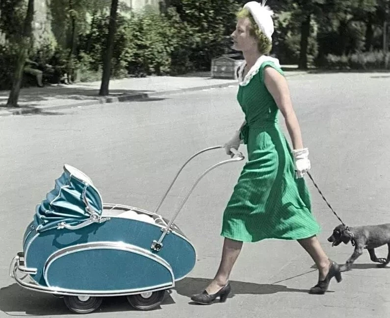 Vintage Futuristic Baby Stroller, West Germany, 1950s 8.5x11 Photo Reprint
