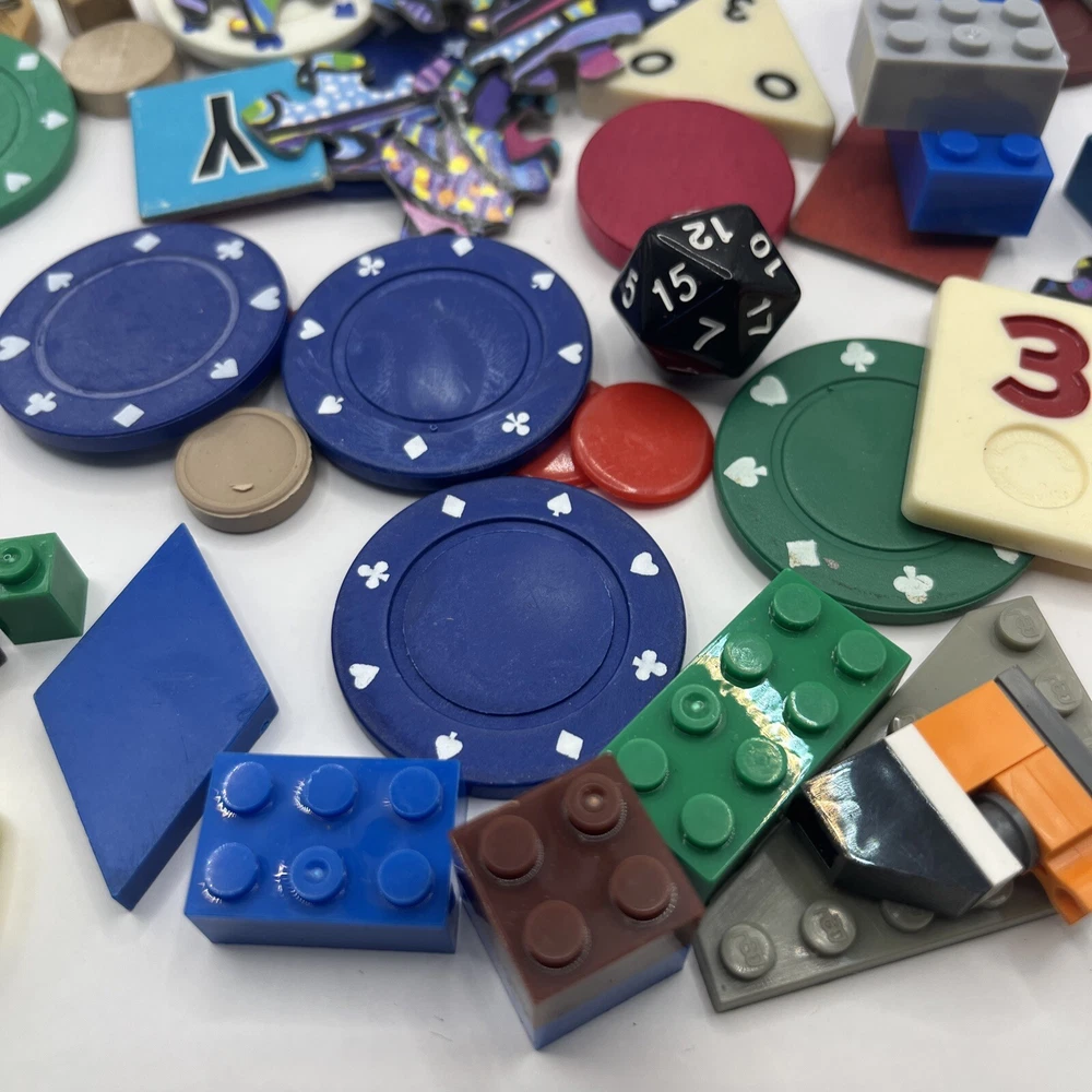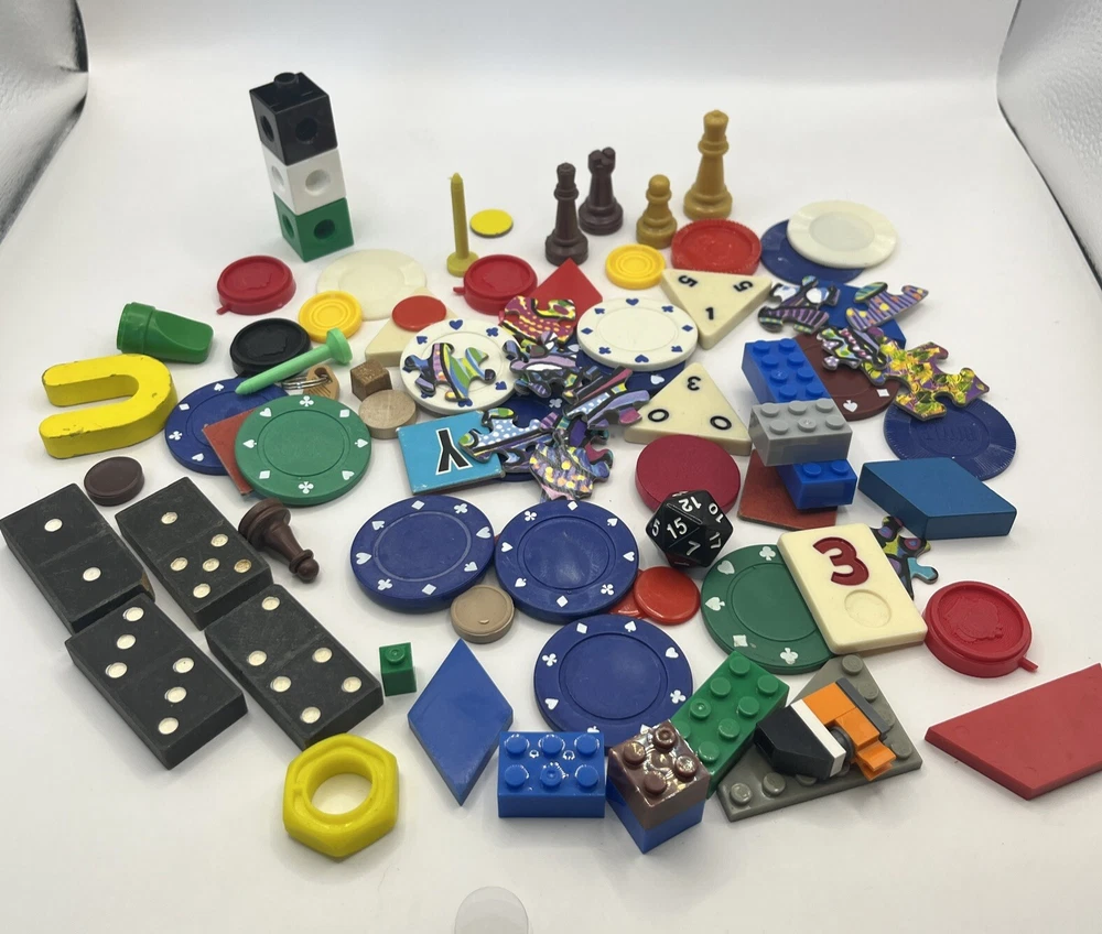 HomeVintage Game Piece Mixed Lot Chess Logo Puzzle Poker 8 ounces