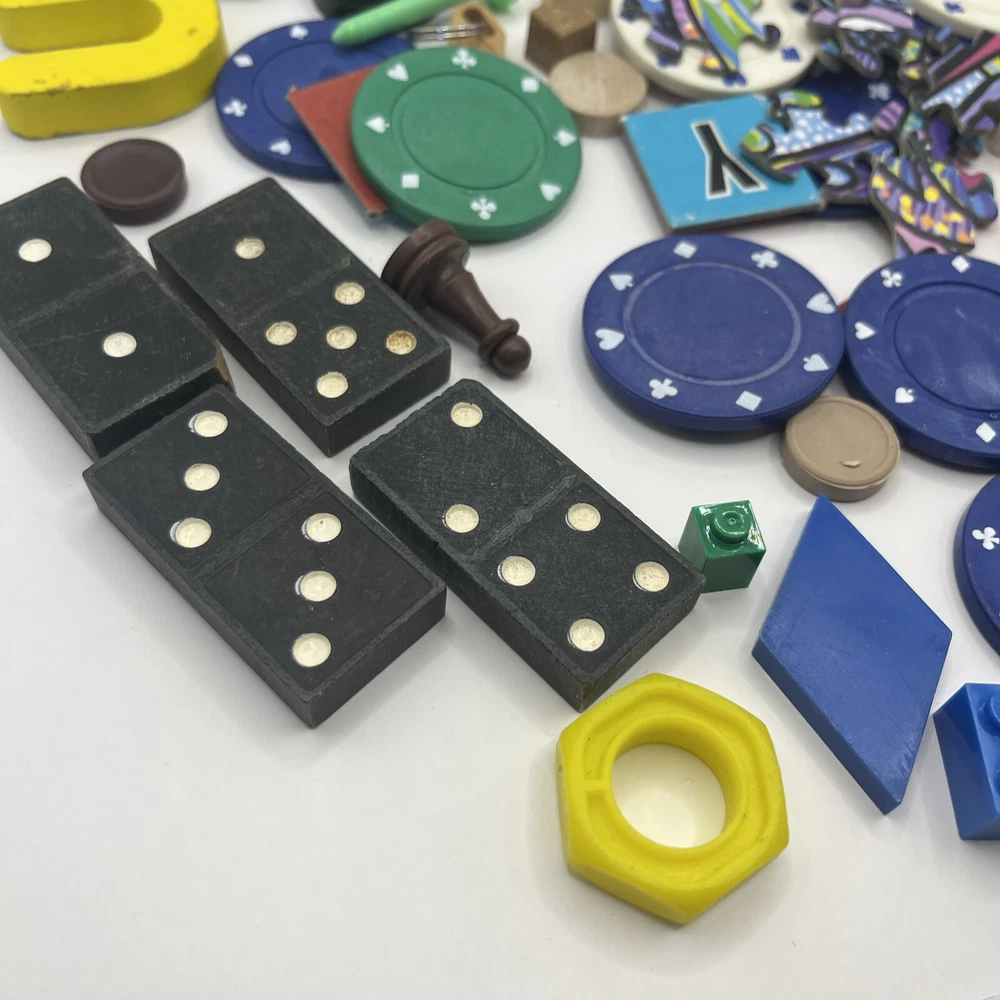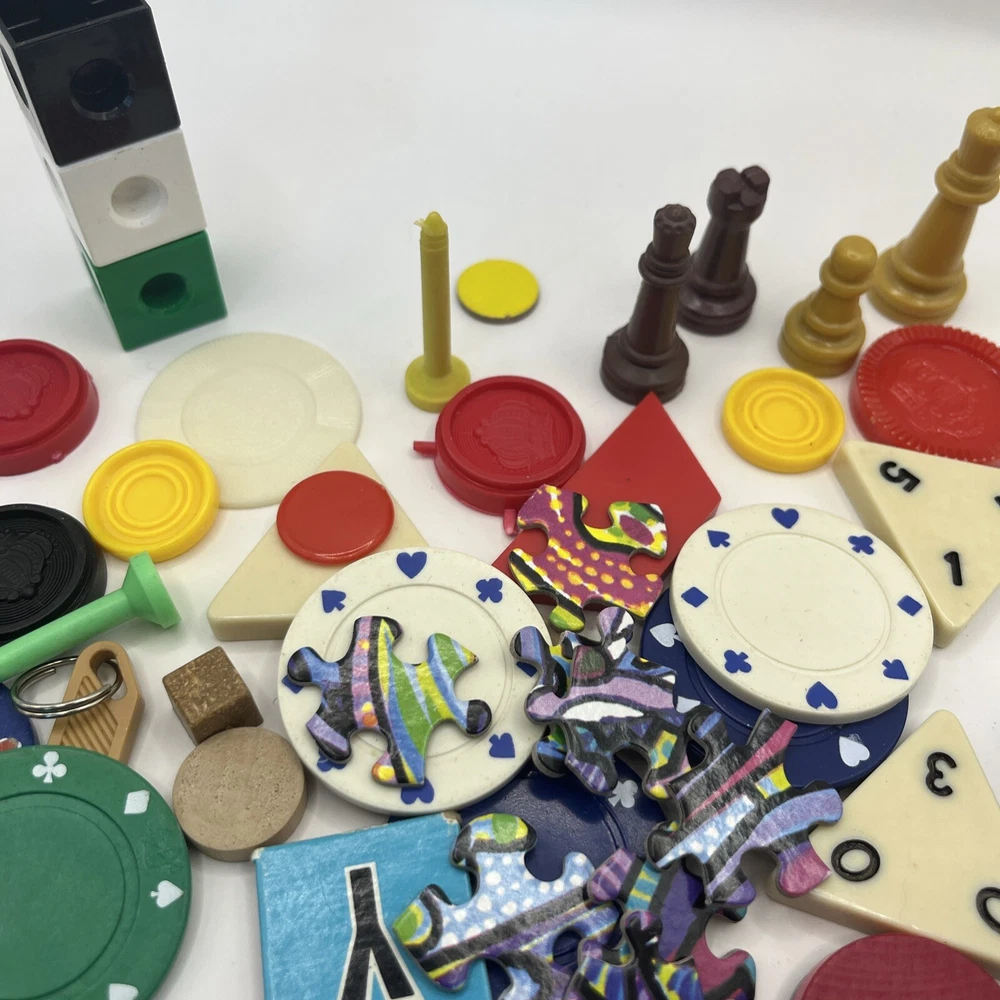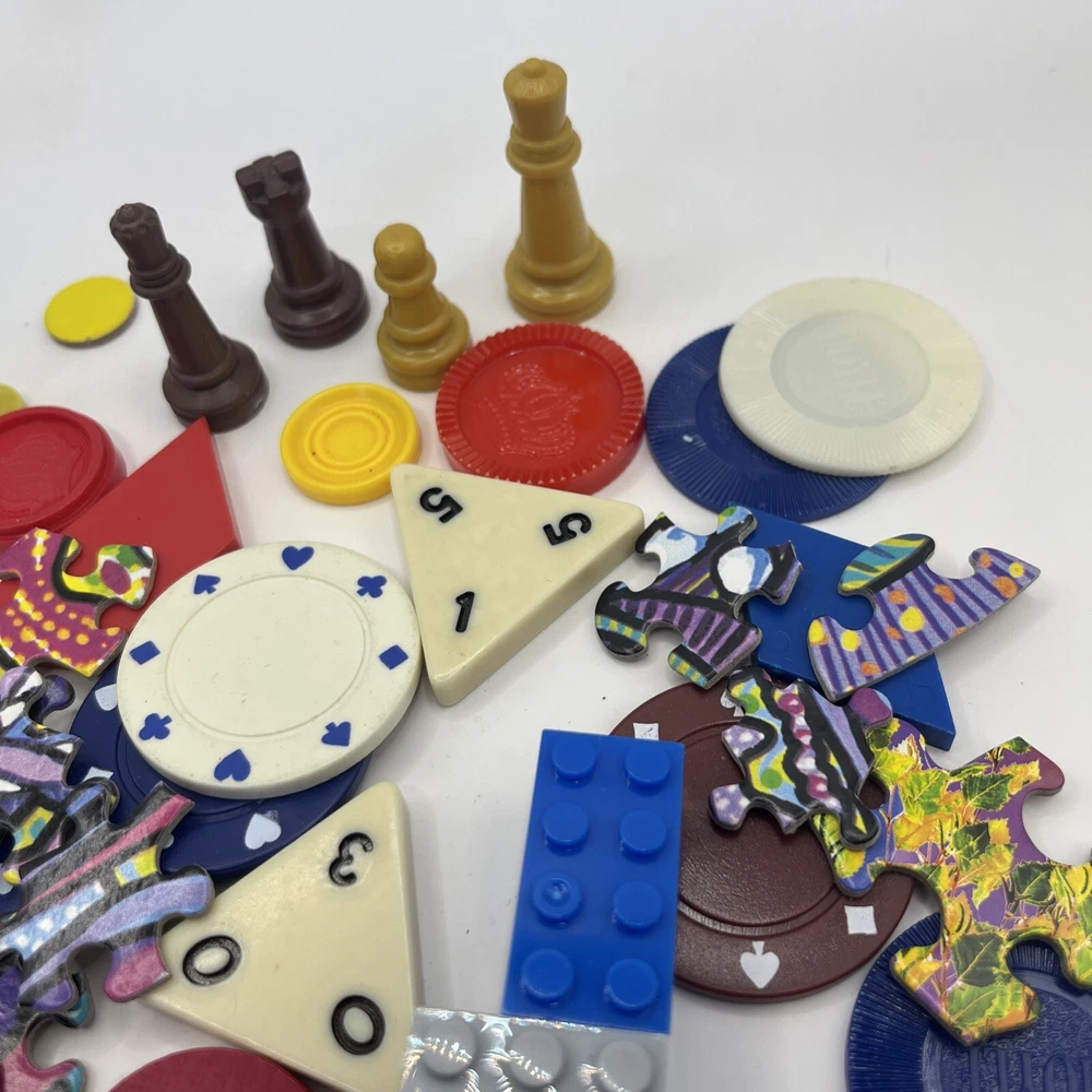 Vintage Game Piece Mixed Lot Chess Logo Puzzle Poker 8 ounces