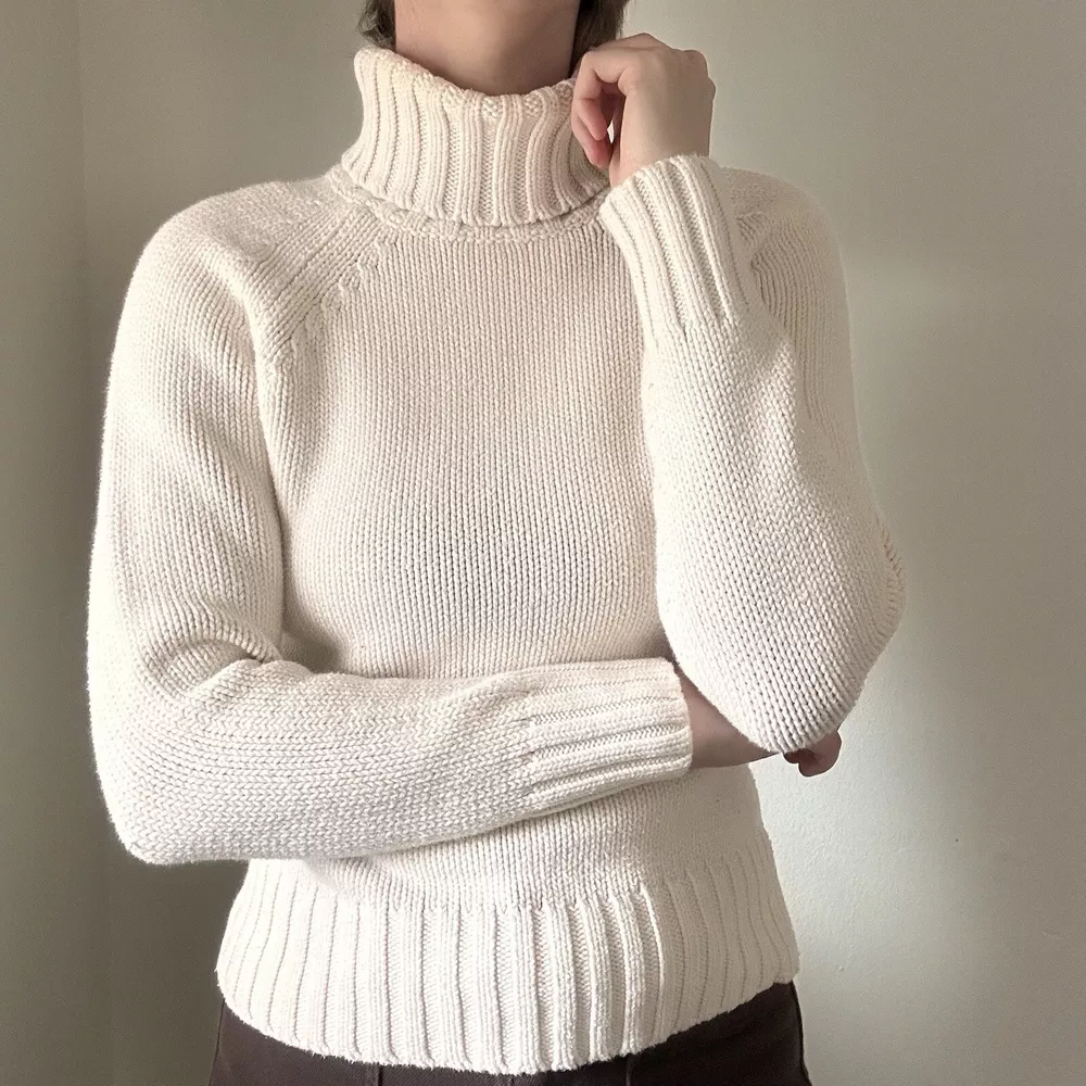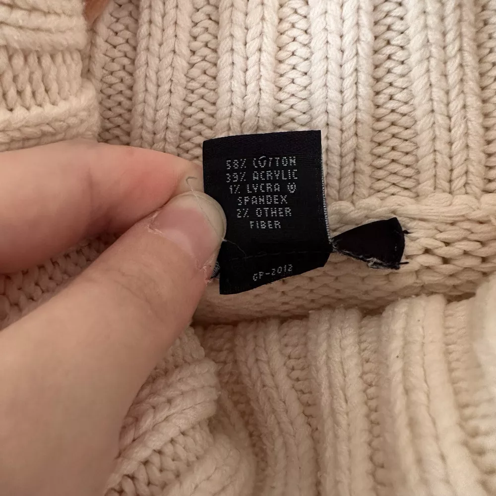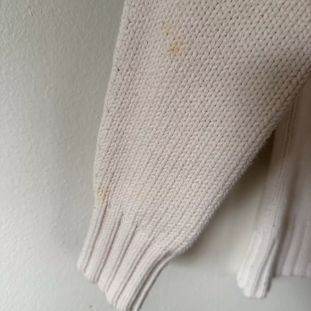 Vintage cream chunky turtleneck sweater. Very classic style, featuring raglan sleeves, chunky ribbed turtleneck, and wide ribbing on the hemline and cuffs. There are two stains on the underside of the right arm. They could probably still be treated out. I just didn’t notice them until after I washed it. Brand is Gap Tagged size S Cotton/Acrylic blend Measurements Pit to pit: 16” Length: 22.5” *model is size S/M, 29”waist, 5’8” tall #vintage #90s #y2k #rorygilmore #sweater knit chunky cozy winter fall cottage cabin prairie Gilmore girls warm basics essential minimalist versatile layers style aesthetic professional business casual