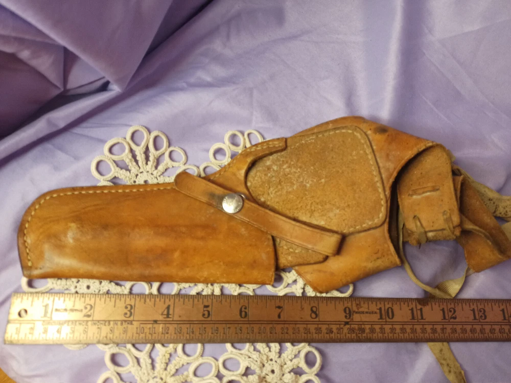 This vintage George Lawrence holster is a must-have for any cowboy or Western enthusiast. With its classic design and durable construction. Made by a trusted brand in the industry, this holster is sure to impress. Whether you're hunting in the field or just looking for a stylish accessory to complete your Western outfit, this holster is the perfect choice. Its unique design and high-quality materials make it a standout piece that is sure to turn heads. So why wait? Add this vintage George Lawrence holster to your collection today!
