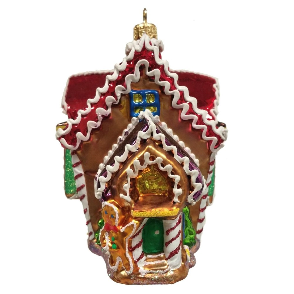 Gingerbread House Polish Glass Christmas Ornament Decoration Made in Poland PRODUCT DESCRIPTION Gingerbread House Ornament. Handcrafted in Poland. Hand-painted. Made from mouth blown glass. Approximately 5.25 inches tall (13cm). Includes original Pinnacle Peak Trading box and packaging. Imported by Pinnacle Peak Trading Company. © Copyright . All rights reserved.