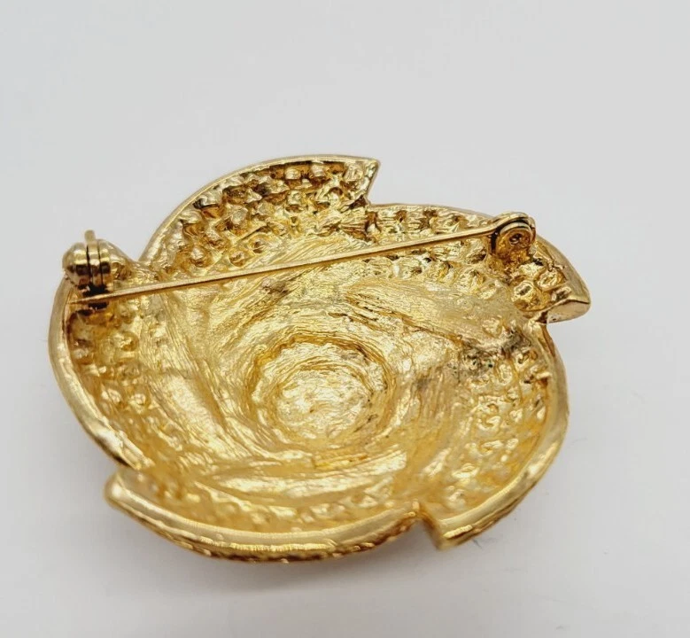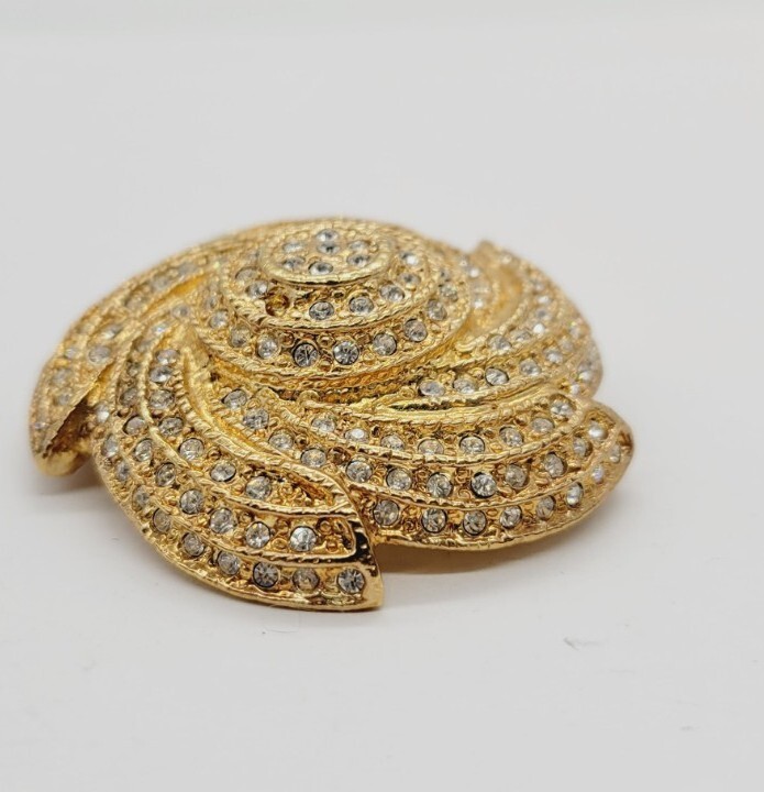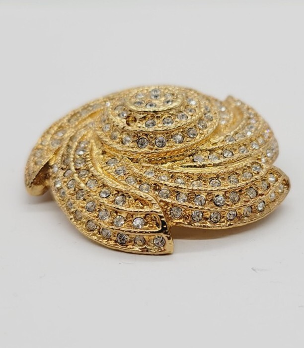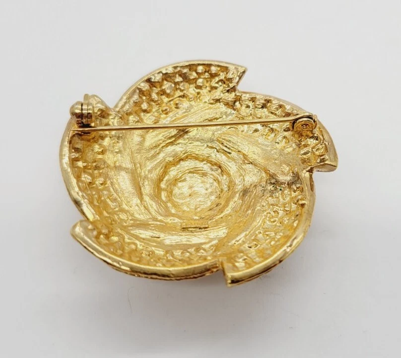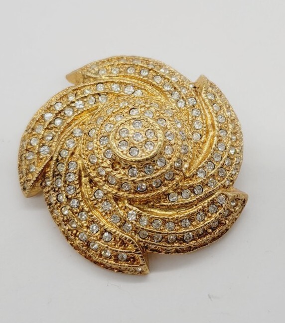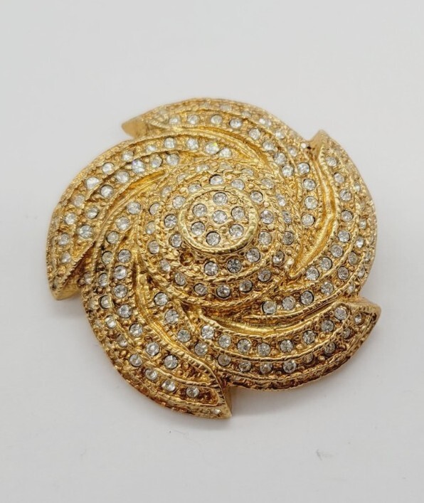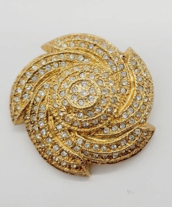 Vintage Gold Tone 3D Pinwheel Brooch with Crystal Accent