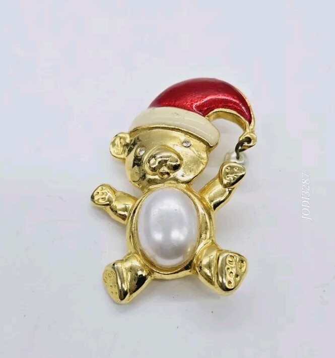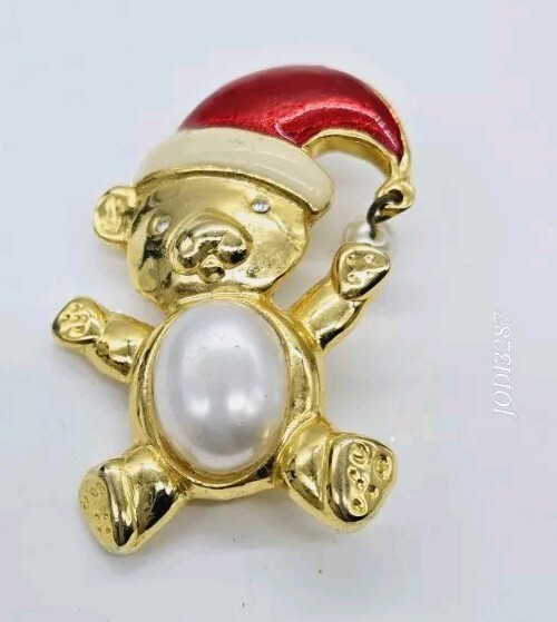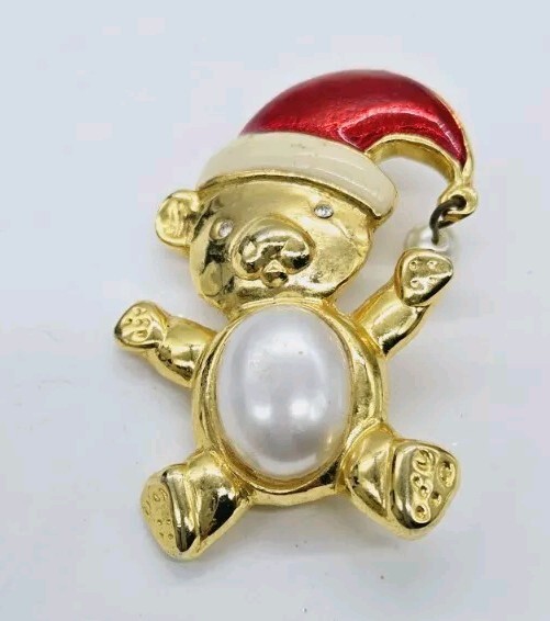 Vintage 2 1/2” Gold Tone Vibrant Green Christmas Tree Brooch Pin Red Enamel Trim