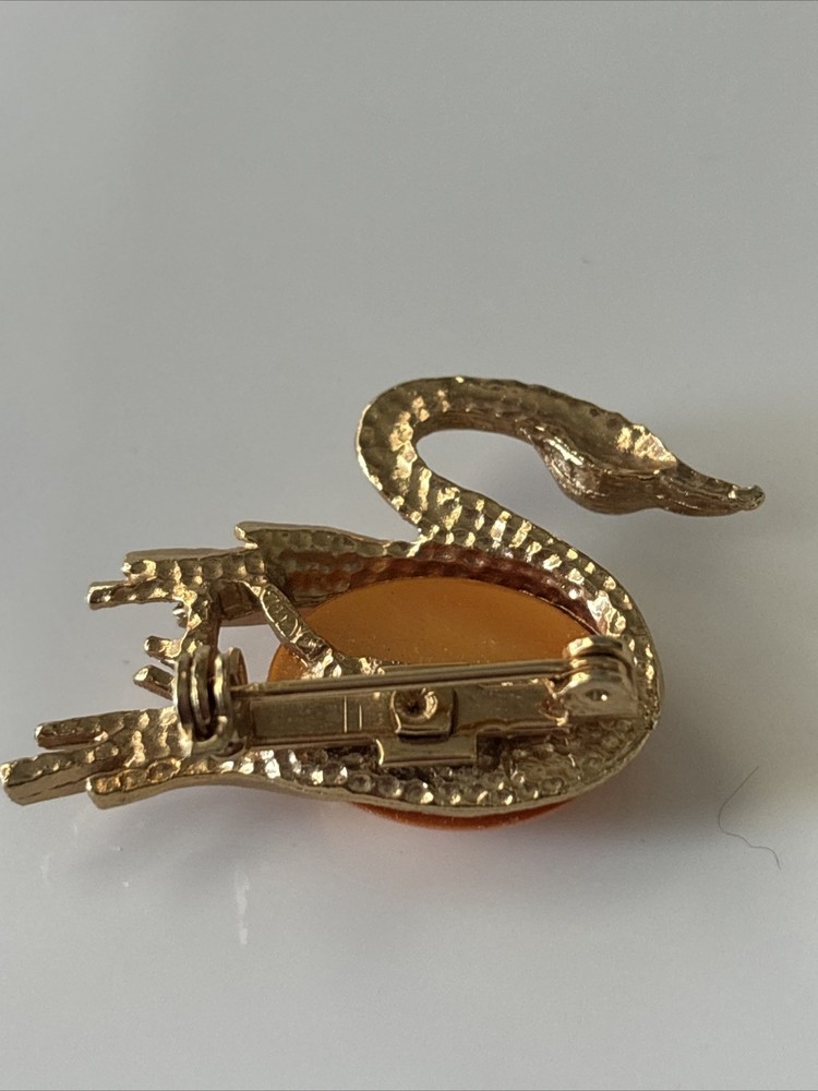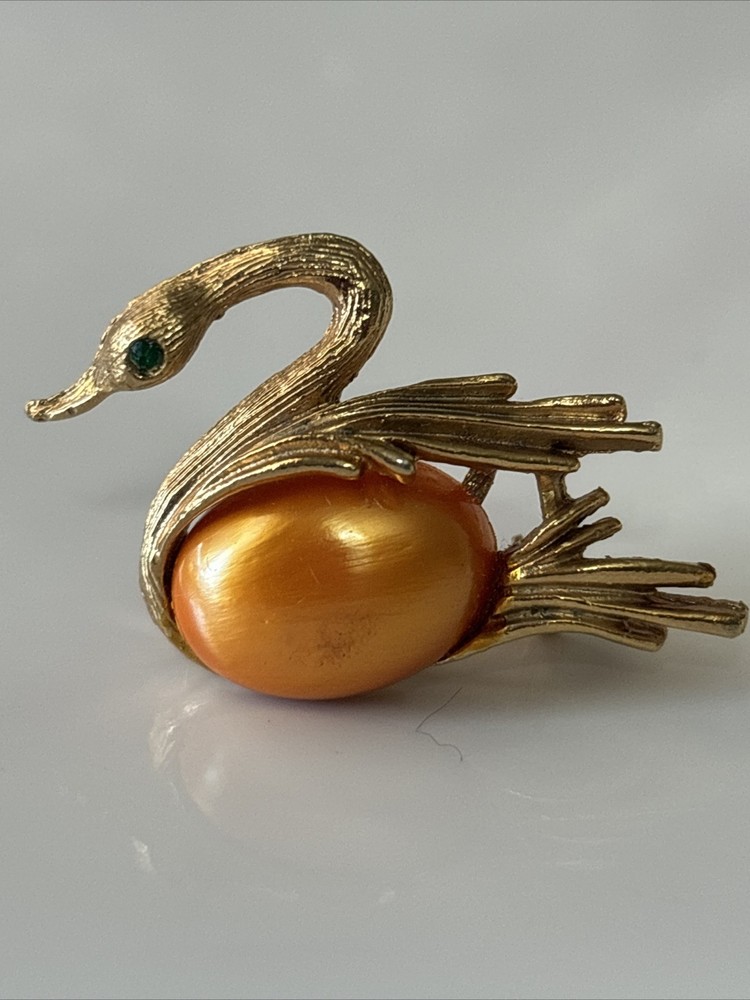 Absolutely love this brooch! The golden swan is stunning with its rich orange hues and that sparkling green rhinestone eye adds the perfect touch of elegance. The vintage vibe gives it so much charm, and it’s surprisingly lightweight yet feels sturdy. Looks amazing on jackets, scarves, or even a hat—adds instant glam to any outfit. A must-have for anyone who loves unique, statement accessories!