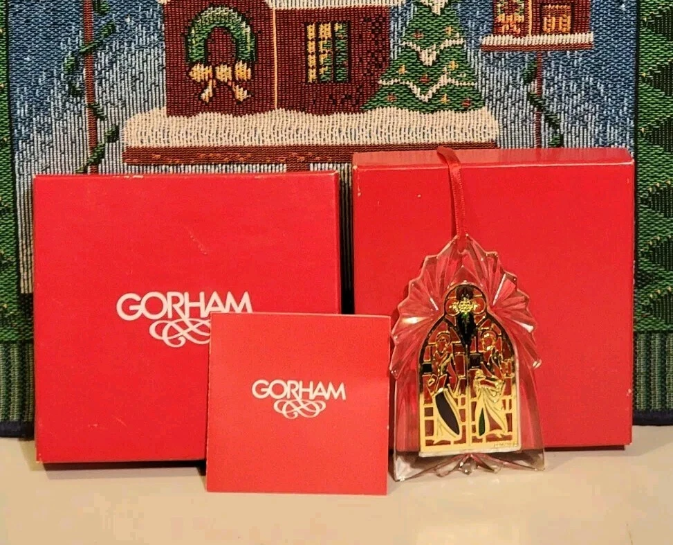 This vintage Gorham stain glass English window Christmas ornament is a beautiful addition to any holiday decor. Measuring about 3.5 inches in height and 2 inches in length, it features a stunning irregular shape and a multicolor stained glass pattern. The ornament is made of high-quality crystal and comes in its original box, making it a great gift for collectors or anyone who appreciates vintage Christmas decorations. The ornament is an original piece from the 1990s, manufactured in Germany. It is perfect for anyone over 18 years old and is sure to add a touch of elegance to any Christmas tree. The set includes one ornament and is part of the Ornaments collection. The theme is a stain glass window and the subject is crystal. This antique-style ornament is not personalized and is suitable for multipurpose recipients.