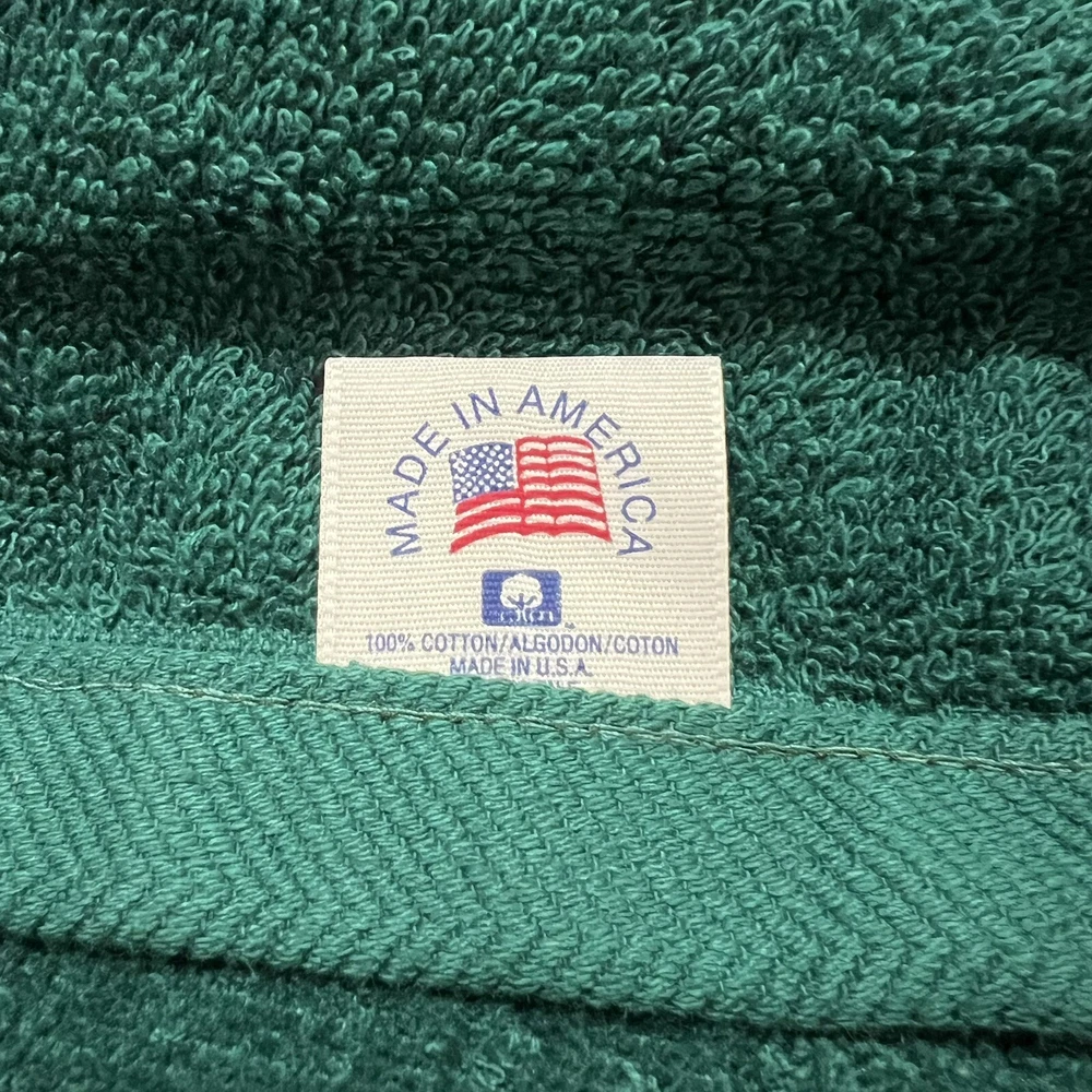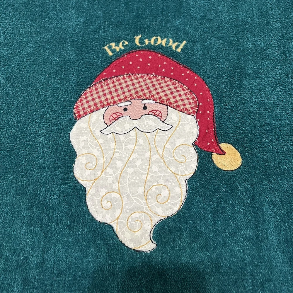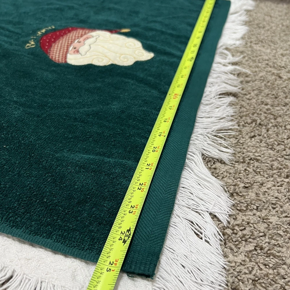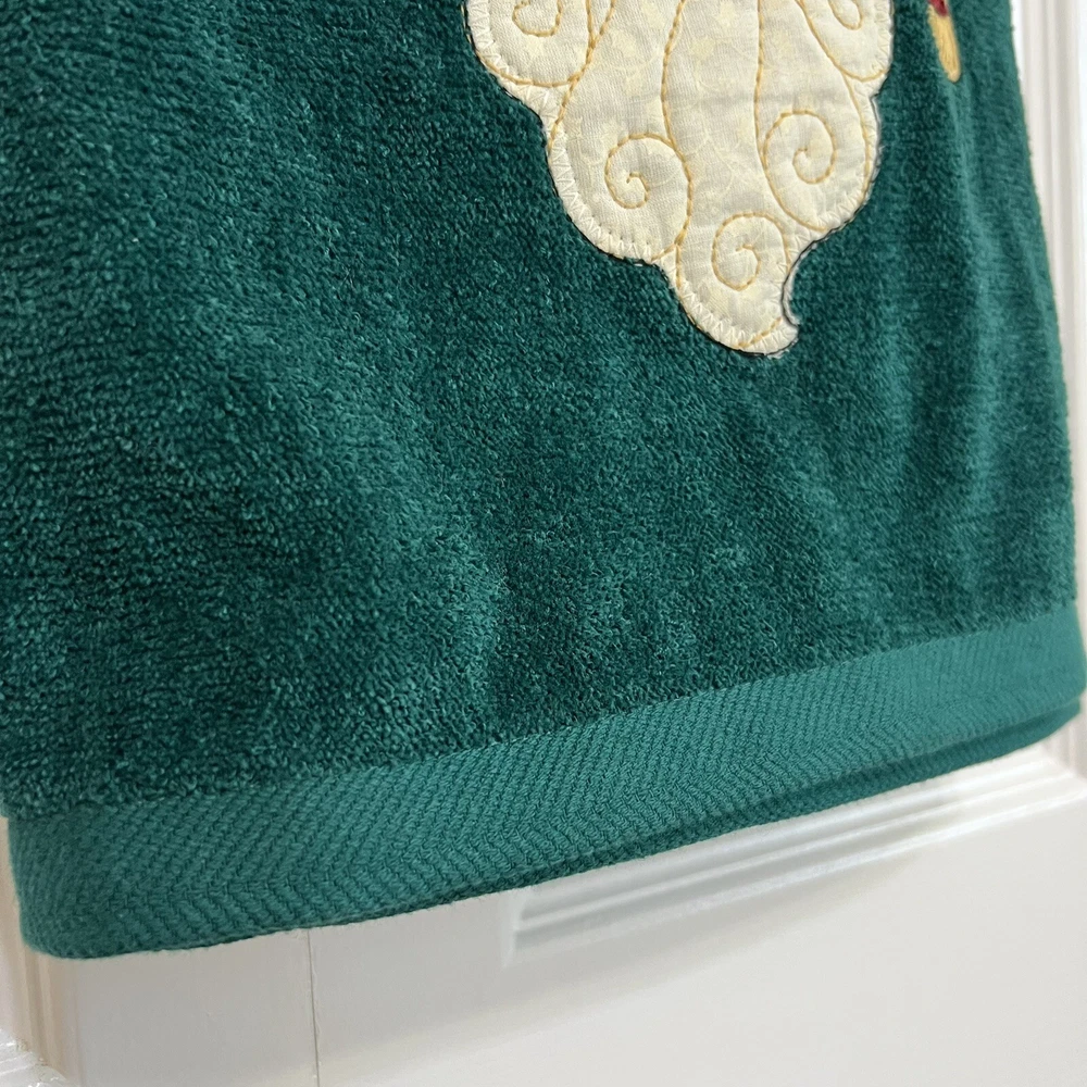 Vintage Green Bath Towel ‘Be Good’ Embroidery Santa Patchwork Cotton Made in USA