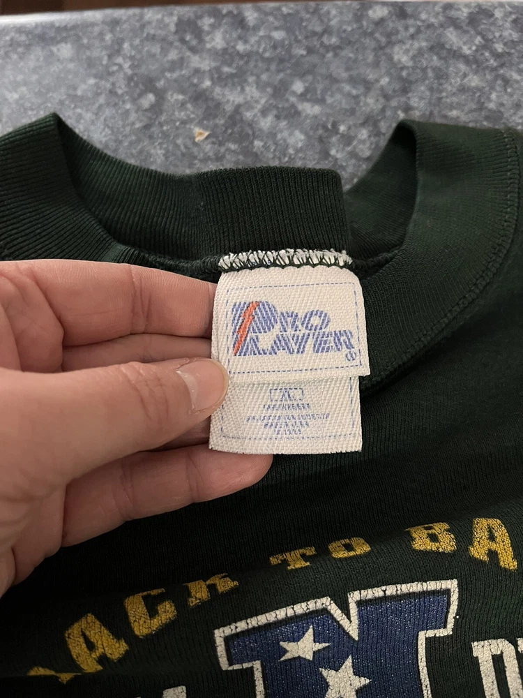 Show your love for the Green Bay Packers with this vintage ProPlayer sweatshirt from 1996. Featuring the iconic team colors of green and gold, this officially licensed NFL product is perfect for any football fan. With a size of XL and a gender of men, this sweatshirt is a great addition to any sports memorabilia collection. Celebrate the Packers' success in the Super Bowl with this stylish and comfortable sweatshirt. Made in the United States, it's a high-quality product that will last for years to come. Get your hands on this classic piece of fan apparel today!