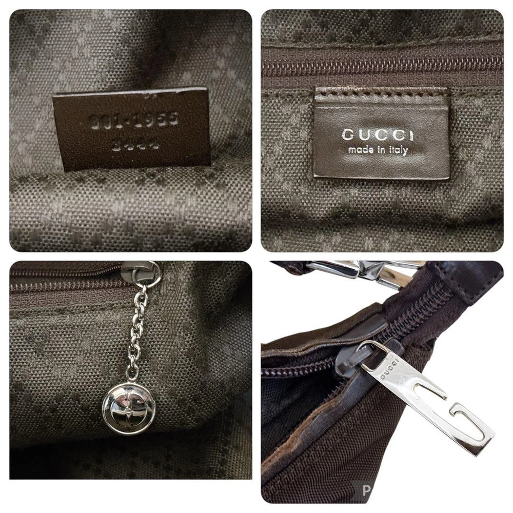 Gucci Brown Leather One Shoulder Bag Half Moon 1955 Authentic /Used++ Features This genuine Gucci shoulder bag features a stylish brown nylon and leather exterior with gold logo hardware. It measures approximately 36cm wide, 27cm high, and 13cm deep, with a 30cm handle strap. The bag includes one internal zipper pocket and is in excellent condition with minor signs of wear, such as slight cracks and scratches on the leather. Perfect for everyday use, it combines luxury and practicality, suitable for various occasions. The item has been cleaned and inspected for quality. Item Specifics: - Brand: GUCCI - Model: 001 1955 3444 - Style: Shoulder Bag, Handbag, Semi-Shoulder Bag - Exterior Material: Nylon, Leather - Exterior Color: Brown - Department: Women - Product Line: Gucci - Handle/Strap Material: Leather - Handle/Strap Color: Brown - Size: 36cm x 27cm x 13cm - Handle Drop: 30 Specifications Brand Gucci Country Japan Department Woman Theme Bag Item Title Gucci One Shoulder Bag Handbag Half Moon 1955 Brown Payment Supports managed payments Please pay within 5 days after auction is finished. About Us We are located in Japan. It's our pleasure to make you happy by proposing our recommend item. If you have any questions or request about items, please feel free to ask us. International Buyers - Please Note: -Import duties, taxes, and charges are not included in the item price or shipping charges. These charges are the buyer's responsibility. -Please check with your country's customs office to determine what these additional costs will be prior to bidding/buying. -These charges are normally collected by the delivering freight (shipping) company or when you pick the item up - do not confuse them for additional shipping charges. -We do not mark merchandise values below value or mark items as - gifts - The US and International government regulations prohibit such behavior. Thank you for your understanding.