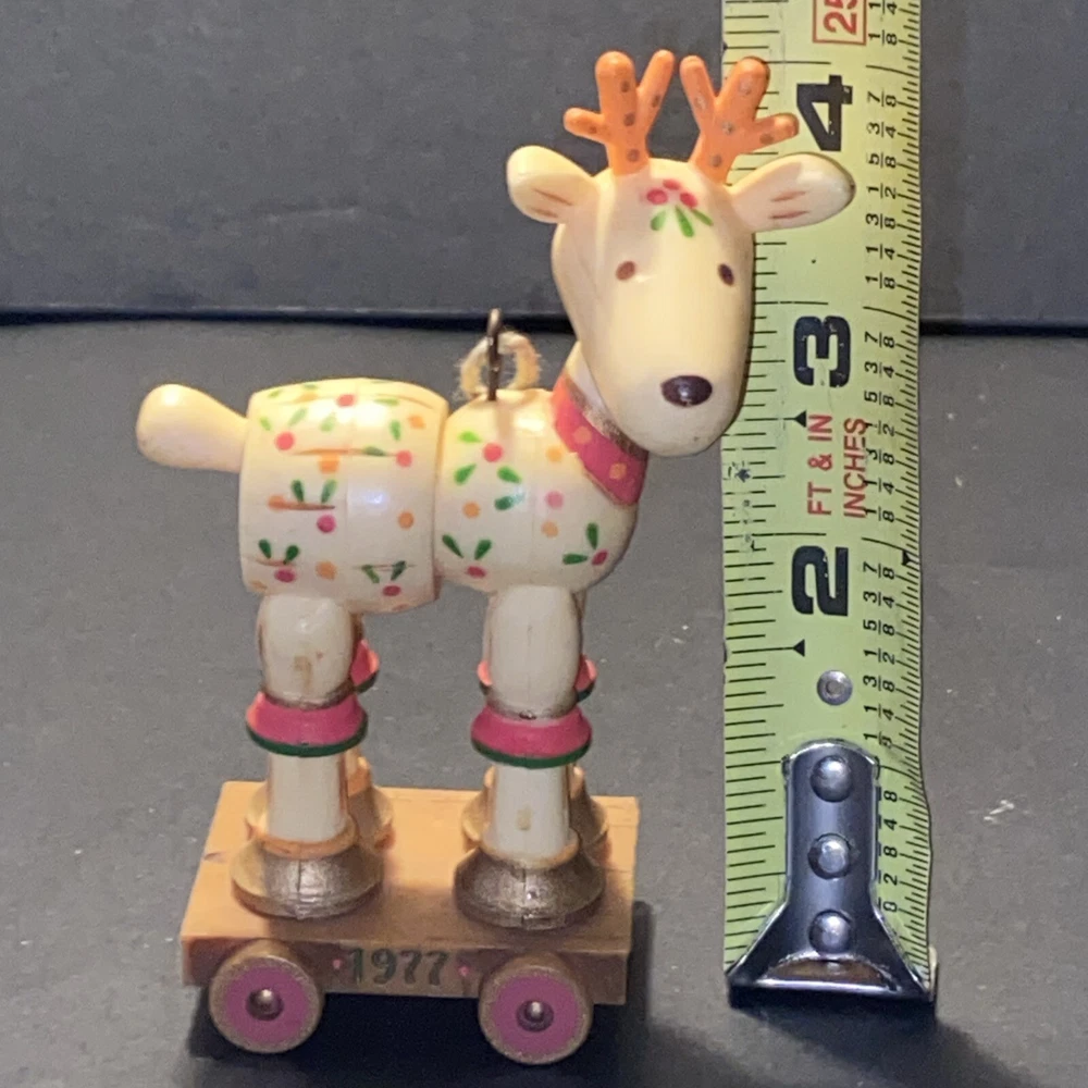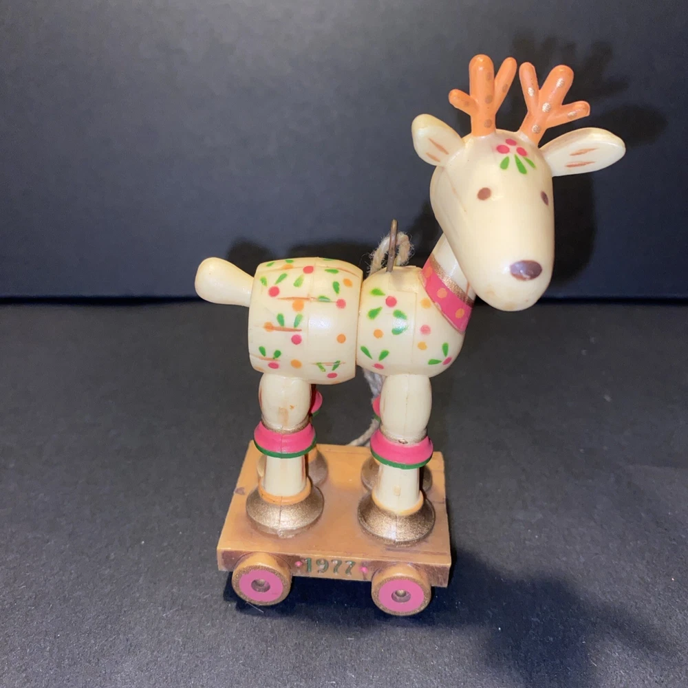 Shape:ReindeerSet Includes:OrnamentColor:MulticolorCountry/Region of Manufacture:Hong KongOriginal/Licensed Reproduction:OriginalNumber of Items:1Year Manufactured:1977Type:OrnamentBrand:HallmarkTheme:ChristmasFeatures:VintageVintage:YesOccasion:ChristmasSubject:ReindeerCollection:Ornaments