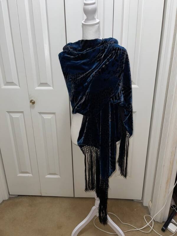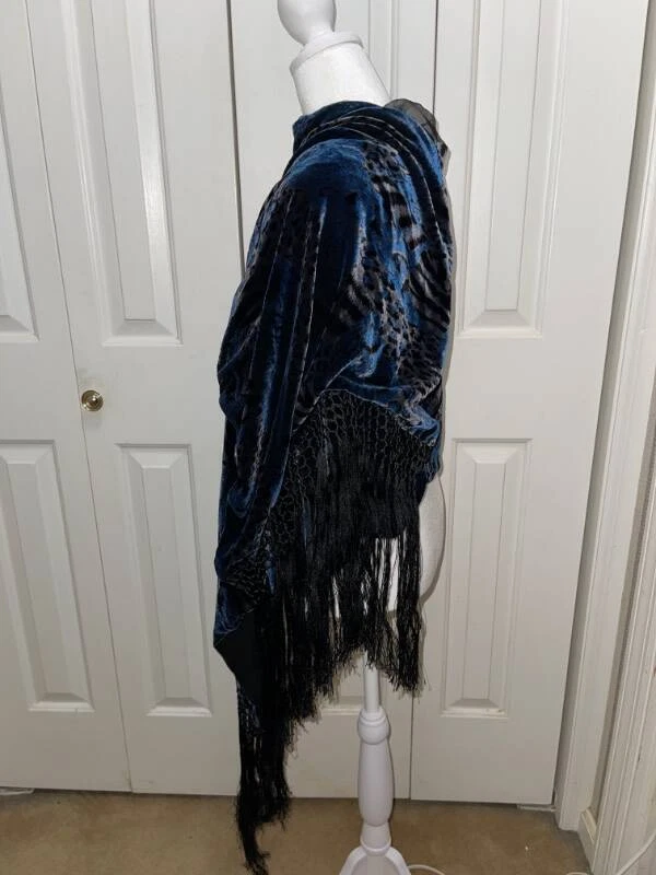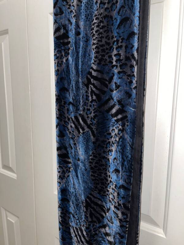 Women's Vintage HELEN FABRIKANT Black and Blue Animal Print Rayon Silk Scarf Excellent Used Condition This is one beautiful scarf! Approximate measurements: 72" long and 22" wide Material: Scarf front is 82% rayon and 18% silk; Lining is 100% silk Handmade fringe Dry clean only Smoke free home (but we do have three wonderful dogs) Please note…I am not a true “store” like the ones found at a shopping mall or on-line. I am a retired elementary teacher selling as a hobby. I ask that you read entirely my listing before purchasing to avoid returns. Please be aware of postal delays, too. Thank you! For all Buyers and Bidders : Thank you for your interest in my item. I am a Christian women and also a wife, mom, and 3rd grade teacher who is trying to earn some extra money to support my children's athletic endeavors (Both seniors-one high school and one college). I look forward to doing business with you! Have a wonderful blessed day! See my other listings for more great items! Payment and Terms : I only accept PAYPAL , so please make payment as soon as the auction has ended or within three days of the end of the auction. Due to issues, I will not accept eChecks and will cancel any orders paid with one. Once your payment is cleared, I will send your item within three business days. If your item is not paid for within the stated time frame, E-bay will automatically open an "unpaid item" case. I know that we all lead busy lives, but it benefits us both if you pay on time. Thanks. Shipping : I will combine shipping for multiple purchases. If you purchase multiple items, please wait for an invoice so I can send you the adjusted payment for your item and shipping costs. Also, remember that shipping costs include total size of package, weight of package, my shipping materials, and destination. If your item is under 16 oz., I will mail first class. On other purchases, I only mail USPS Priority Mail for speed and tracking purposes. The sooner you pay, the sooner I will ship your item(s). Also, please note that once your item has been shipped, it is now in the "hands" of the postal service. Please give honest feedback regarding shipping times as I cannot control how long it really takes to get to you. If there is a problem, please contact me and I will do my best from my end to resolve the problem. Buying or Bidding : First, please look closely and carefully at all the pictures and read the entire listings and descriptions. I use a Canon camera to take my photos and believe that they are of quality production. I also give as many details as I feel necessary to describe the item accurately. You may also extend a reasonable offer to me. If I accept, I will send you a return offer that you can accept or deny. Returns : As of now, I will no longer accept returns . I am one person who does Ebay as a hobby, and I am not a true "store." I do my best to explain all the necessary detail (both good and bad) for my items. Please read and measure carefully. With that being said, if you do have a problem, you will need to contact me within 3 days of receipt of your item to work out any problems . Also, I'd appreciate it if you reach out and contact me before leaving any negative feedback, as that is only fair in this type of business. Condition of Merchandise : Although I am a non-smoking home, my merchandise comes from a variety of places, and I cannot vouch for the item's exact whereabouts before I bring it to my store. Please note if I laundered the item, as I may or may not launder my items. If you are sensitive to laundry detergents, them please reconsider buying my items. Fit/Measurements : Please remember that the measurements listed are for the garment, not you. To be sure of the fit, measure a similar garment that fits you will and compare measurements. Be sure to allow extra room for jackets, coats, and outwear. Feedback : I encourage you to leave me feedback so I know that your purchase arrived safely and that you are satisfied with your item. After you leave feedback for me, I will do the same for you. Please note any vacation settings and postal delays due to weather. Customer Satisfaction : I hope that you are completely satisfied with your purchase. If you are not satisfied in any way, please contact me before leaving any negative feedback, so I can address your concern and work together with you to remedy the situation. I believe in the concept of being a TEAM-Together Everyone Achieves More...even on E-bay. txzj pxzj1155 txzj-11 txzj-4 txzj19 txzj115