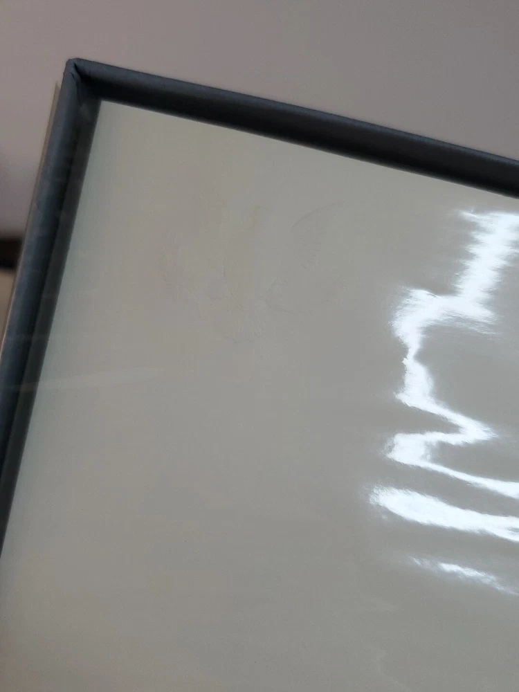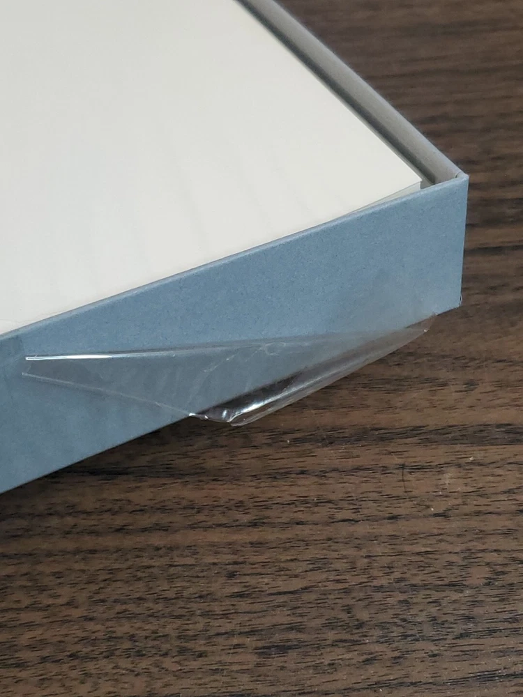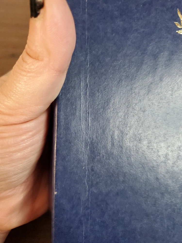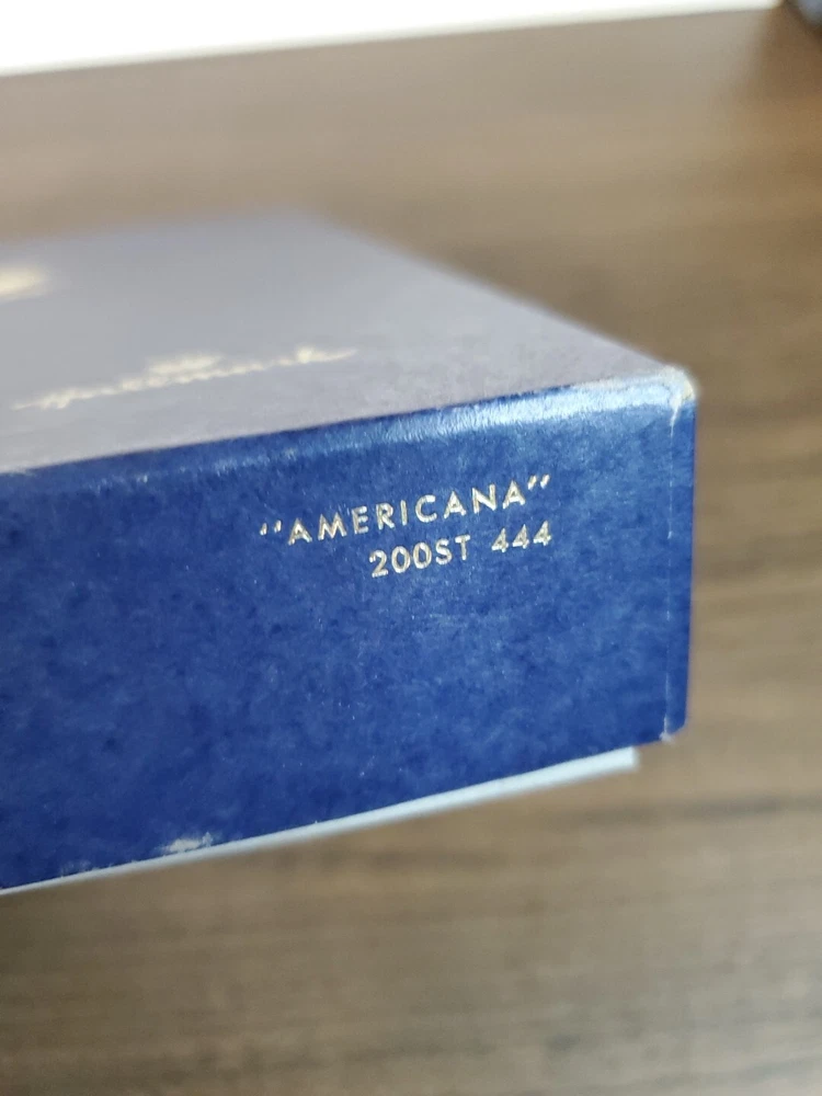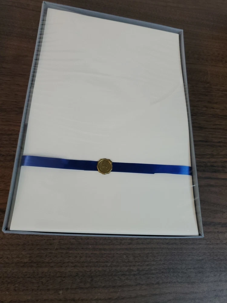 The packaging is a little bit damaged but it's new never opened. I've never seen a beautiful stationary like this. Ot has etched eagles on every page. Beautiful blue and gold box. There is a crease on the box. Sold as is.Please refer to photos for details and any imperfections and ask any questions you may have as there are no returns