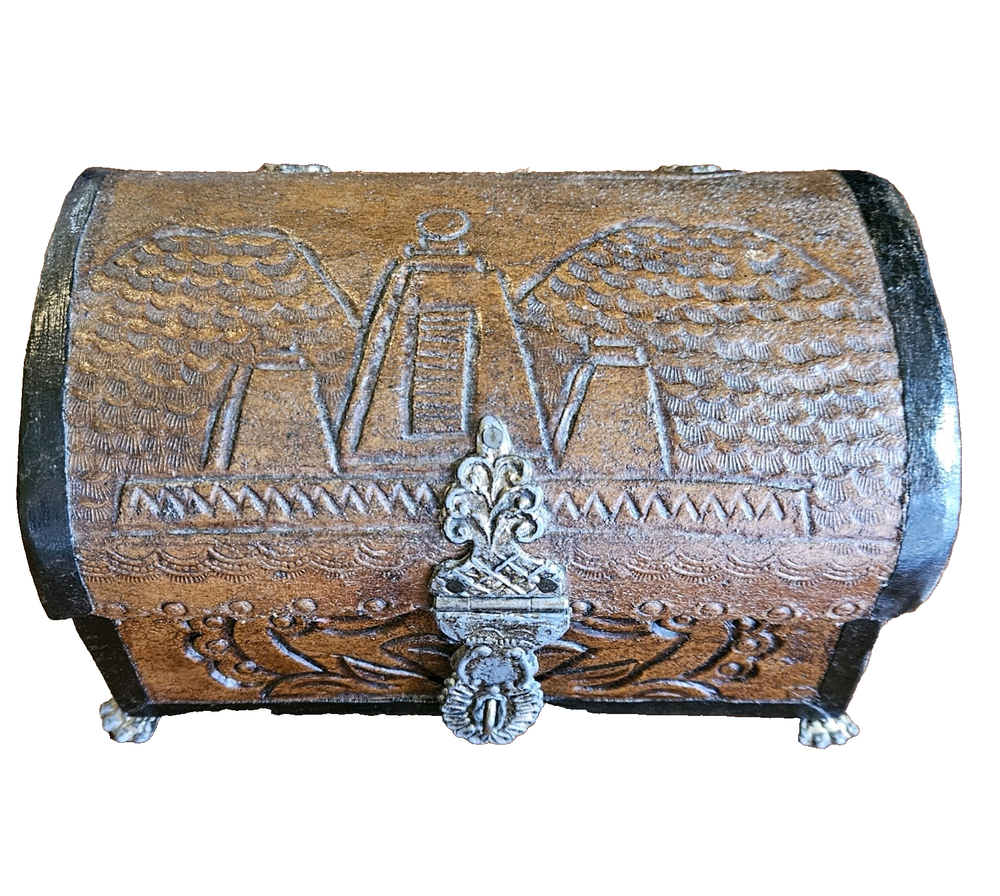 $ 2.64Magnificent Vintage Hand Carved Wood Asian Trinket Jewelry Box w/ Metal Clasp