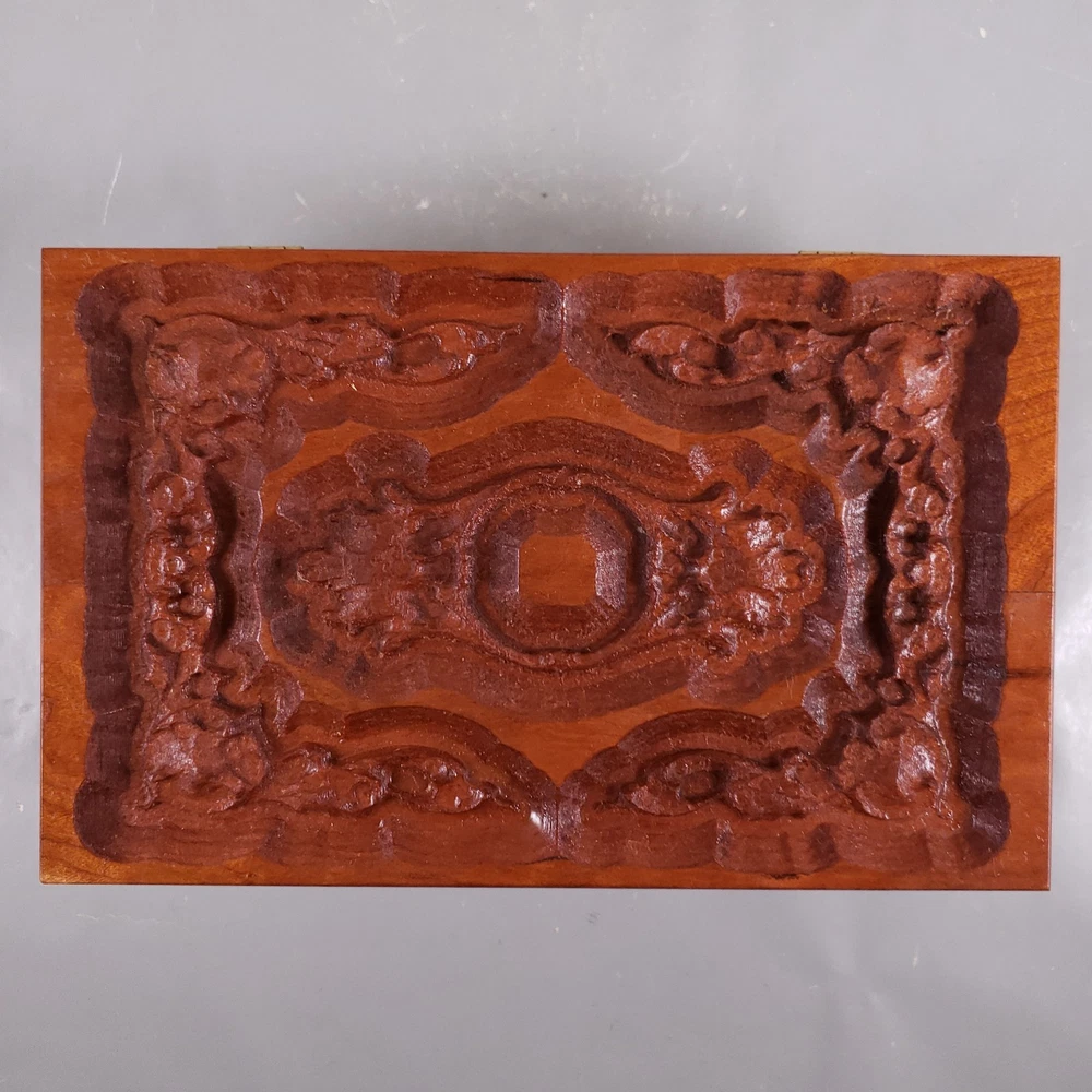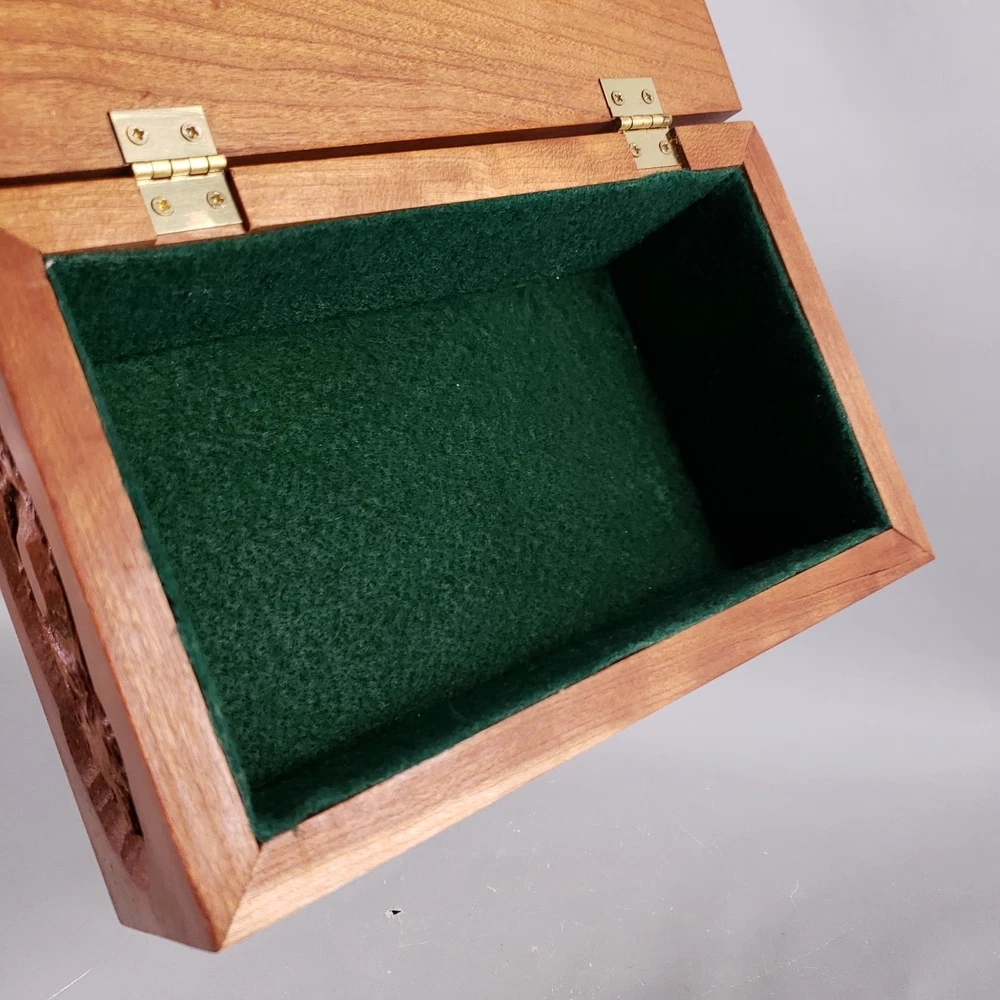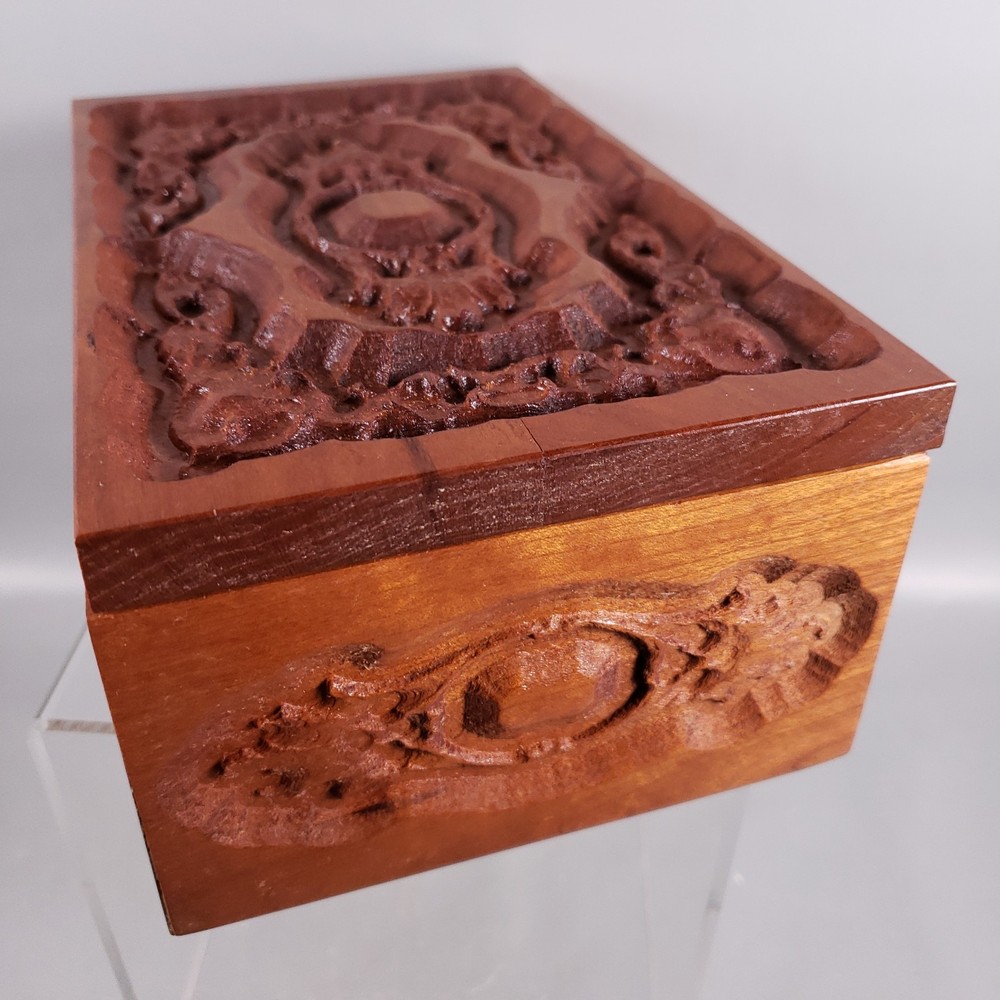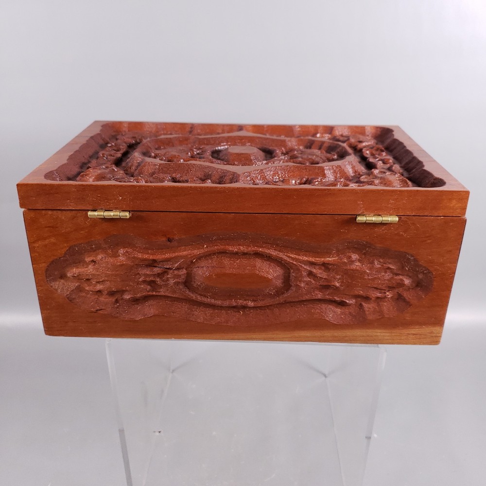 Vintage Hand Carved ROSEWOOD Sheesham Floral TRINKET JEWELRY BOX Hinged Lid • Hand carved Indian Rosewood (Sheesham) box with lid • Floral design • Gold toned metal hinges • Green, felt material lining on bottom of interior • Unmarked, unsigned ** MEASUREMENTS ** • Weight: 1 lb 8 oz • 8½" x 5½" x 3½" ** CONDITION DETAILS ** • VERY GOOD, previously owned condition • Minor age-related wear ** See photos for additional condition details ** PHOTOS ** • Photos provide a visual inspection of the item(s) prior to purchase & are considered a part of the item(s) description • Please VIEW ALL PHOTOS carefully prior to bidding, submitting an offer, or purchase • Our items sold are vintage or antique, previously owned & used • Normal use & age related wear is expected • We do our absolute best to depict the condition of the item(s) in both of the "Item Details" section, as well as in the photos • We are happy to provide additional photos & answer any questions if needed • Feel free to make an offer Thank you for taking the time to view our item!! - Pieces of the Past KC Who we are… A small, family run business located in the heart of the Midwest! We offer a variety of pre-owned vintage & antique items such as CERAMICS, PORCELAIN, ART GLASS, JEWELRY, and EPHEMERA acquired from local estate sales, auctions, thrift & antique stores. We want to provide you with the best service possible! If there is ANY issue with the item delivered, please contact us prior to filing a return or leaving feedback. We would greatly appreciate the opportunity to assist you & provide a resolution! ** SHIPPING ** • Items are carefully packaged & shipped within 1 business day of payment made - Items are normally shipped via USPS Ground Advantage, however UPS & Fed Ex options are also available. - We do NOT charge for the cost of shipping supplies, as this is OUR cost to do business • Shipping prices are quoted by eBay, through the USPS site - Calculated shipping is based upon your location & the package measurements - We obtain accurate measurements of each package to ensure prices are calculated correctly • PLEASE REVIEW & CONFIRM your billing information & shipping address prior to completing the purchase ** Buyer is responsible to provide accurate billing & shipping information • CANCELLATION of purchase after payment has been processed will be refunded minus any fees incurred by the seller that eBay will not refund ** INTERNATIONAL BUYERS ** Please Note the Following: • Import duties, taxes & charges are NOT included in the item price or shipping charges • These charges are NOT within the control of the seller & are the buyer's responsibility • Please check with YOUR country's customs office to determine what these additional costs will be prior to bidding/buying - These charges are normally collected by the delivering freight (shipping) company, or when you pick the item up • We DO NOT mark merchandise values below value or mark items as 'gifts', as US and International government regulations prohibit such behavior • Please allow at least 1-2 weeks, or more for delivery - Customs clearance times vary widely • Insurance is included as per eBay's International Shipping Policy