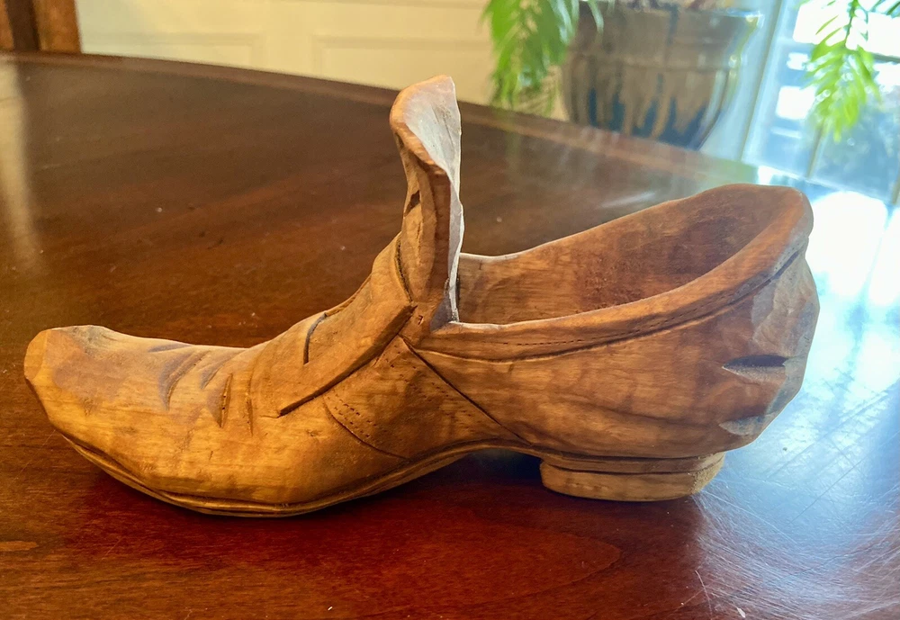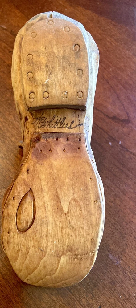 This vintage hand-carved wooden shoe is a beautiful example of colonial style. Crafted by The Whittlers, this shoe is a unique piece that will add charm to any collection. The shoe is signed and was made in the United States during the 1970s. It is a handmade item and is in excellent condition. The shoe would make a great addition to any decorative collection or as a unique gift for a loved one.