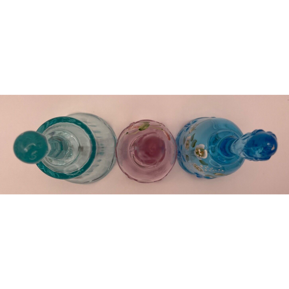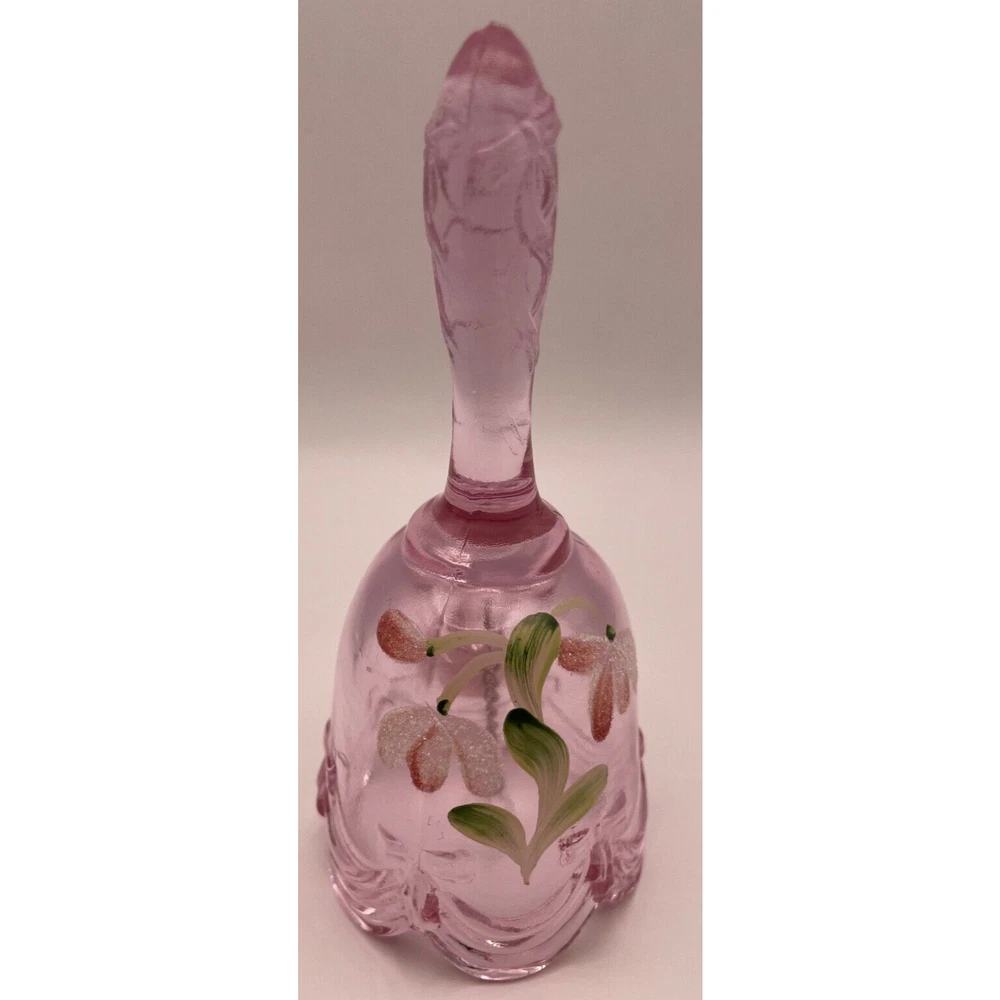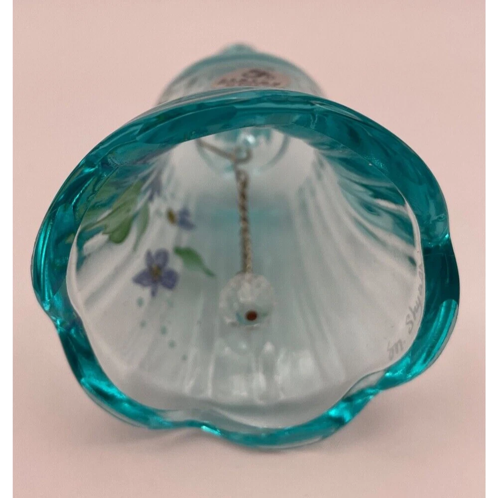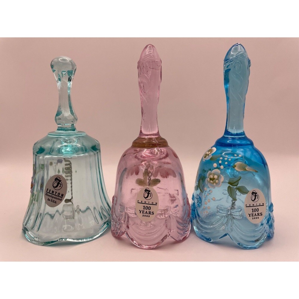 This vintage set of three Fenton bells is perfect for any collector or lover of traditional style. Each bell is hand painted with intricate floral designs, bows, and drapes, making them a beautiful addition to any room. The bells are signed by the artists M. Cade, M. Shyuer, and L. Everson, and stamped with the Fenton brand. The bells are made of pressed glass and have a high gloss finish. They are suitable for indoor use and require no additional parts. Care instructions include wiping gently with a dry cloth. This special edition set is retired and discontinued, making it a rare find for collectors. Don't miss your chance to own these limited edition commemorative bells. These exquisite Fenton Bells are in excellent, like new condition. They have no cracks, no chips. A must have for collectors!