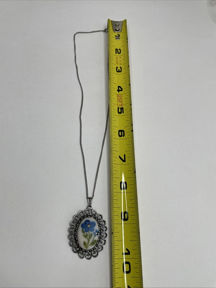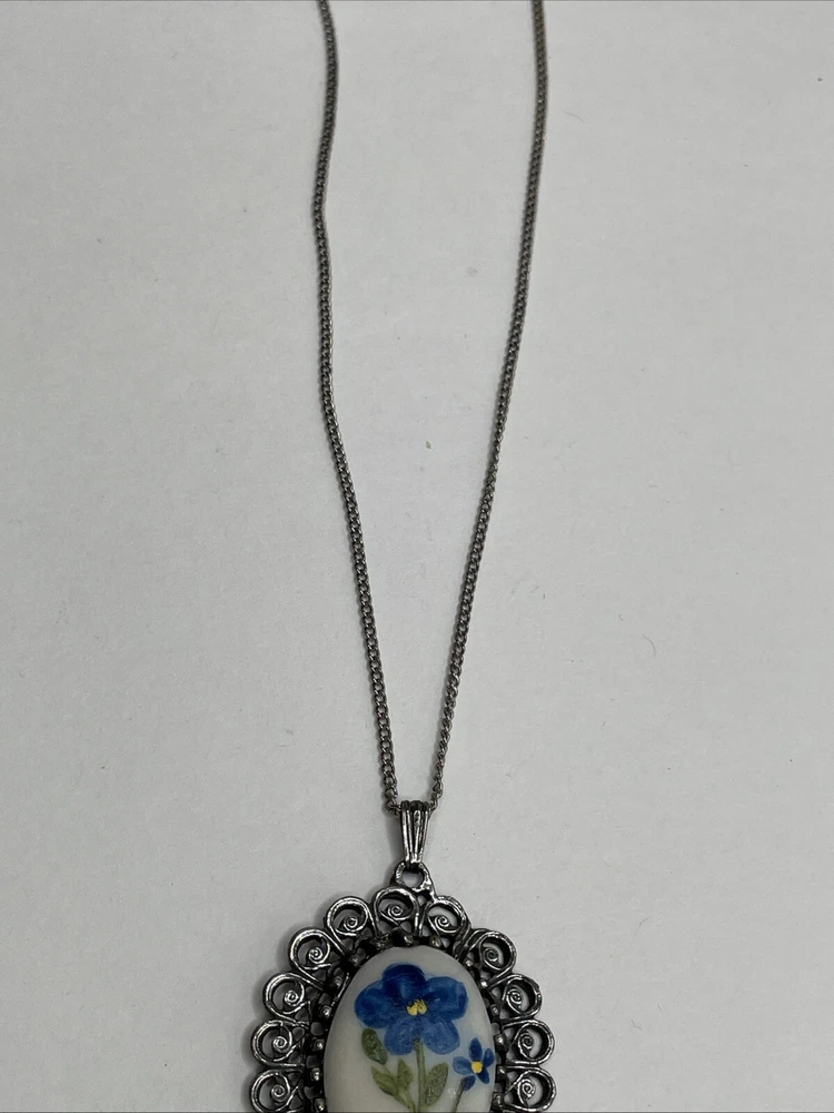 Vintage Hand Painted Purple Flowers Violet's On Porcelain Pendant Necklace Check pictures to judge condition no returns Message me with any questions thanks