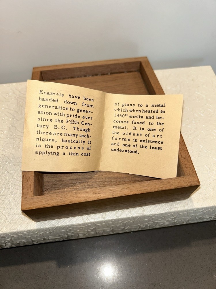 Customized:NoSubject:BoxingShape:RectangleCollection:Keepsake BoxesHandmade:YesMaterial:Enamel, WoodSuitable For:FurnitureColor:MulticolorRoom:Any RoomBrand:WoodenOccasion:All OccasionsType:Trinket BoxFeatures:BoxedSize:SmallCountry/Region of Manufacture:United KingdomPattern:FloralNumber in Pack:1Engraved:NoPackaging:BoxDepartment:AdultsCare Instructions:Clean with Damp ClothTheme:ArtOriginal/Reproduction:OriginalEra:Late 20th Century (1970-1999)
