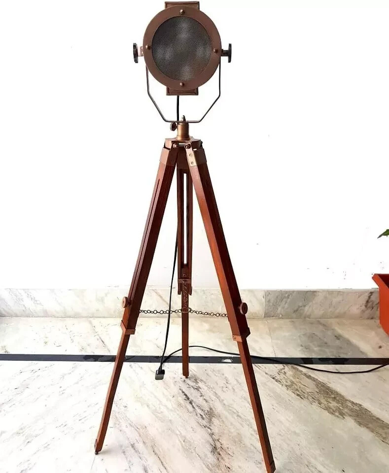 DESCRIPTION Material Used : Wood, Steel, Aluminum & Glass Color : Copper & Brown Size : Head Size: 6" X 8" Inches Height: 43" inches Diameter: 18" inches Weight : 5.2 kg Approx. Usage : Decoration, Floor Search Light, corner lamp, corner corner light Packing: Packed in a package, Corrugated Export Packaging Wiring : In accordance with national standards (AU, EU, UK, US) You can set it in any place you need, such as bedroom, living room, reading corner, apartment, music room, media room, painting room, office and so on. SOLD BY MEDIEVAL REPLICAS
