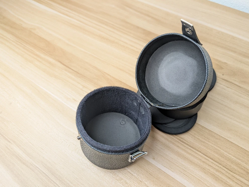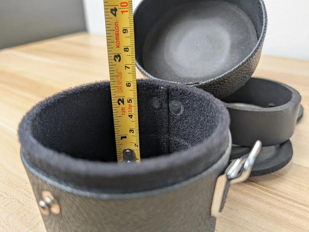 Vintage Hard Lens Case 3.25" x 2.5” Leather Pouch with foam inserts
