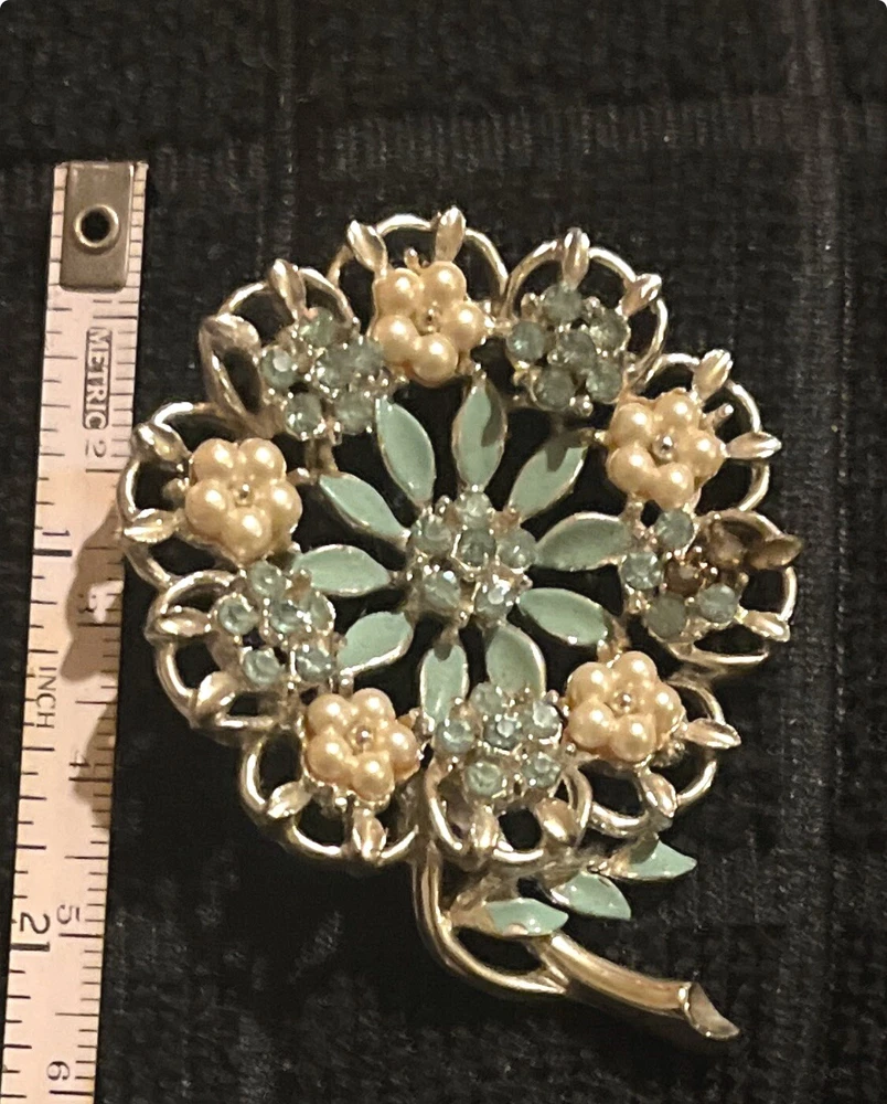 Vintage Heavy Silver Bouquet Floral Pearl And Blue Turquoise Stone Brooch Pin . Condition is Pre-owned. Shipped with USPS Ground Advantage.