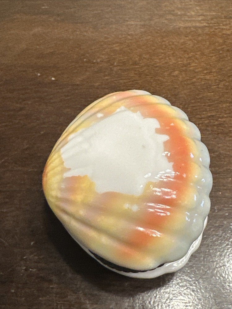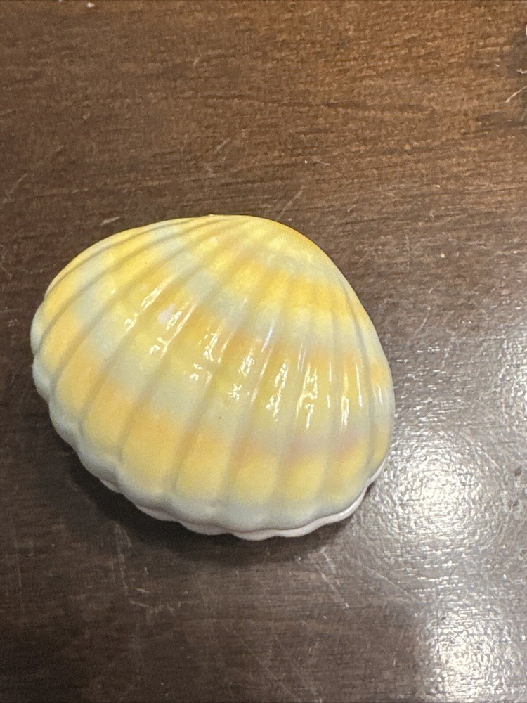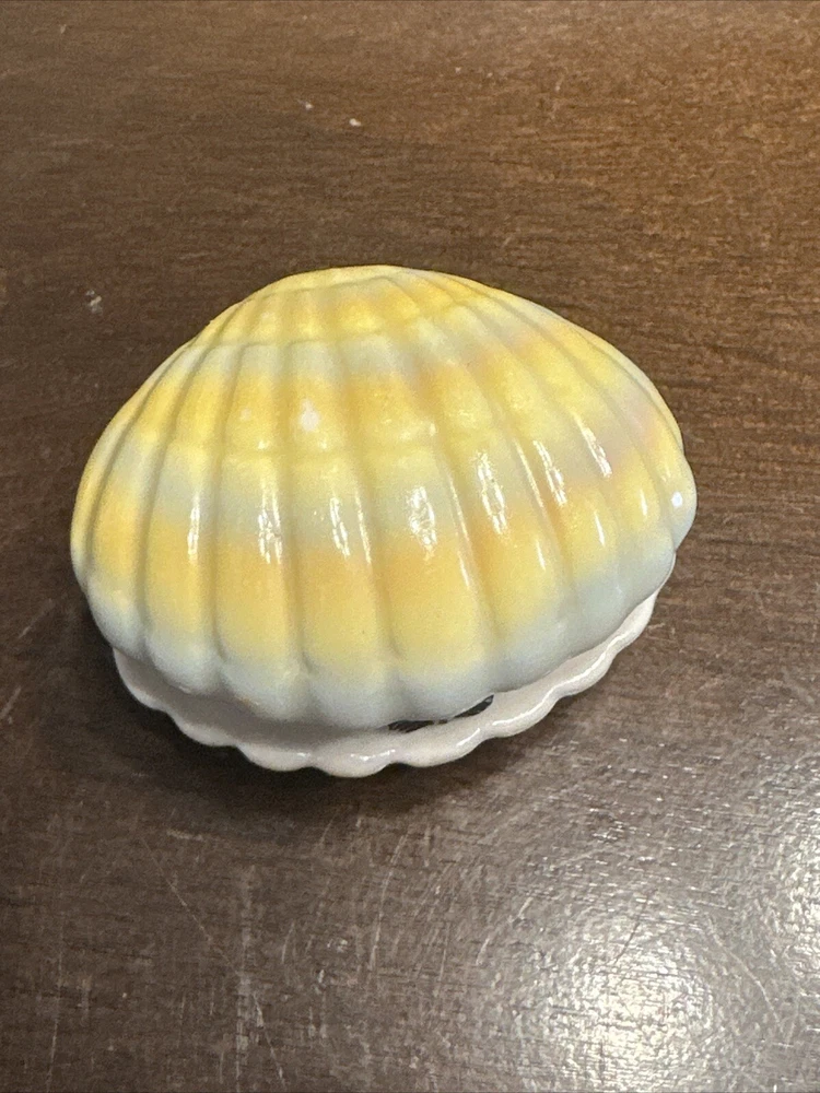 Absolutely love this charming little box! The vibrant yellow color and detailed porcelain shell design make it a standout piece. Perfect for storing tiny treasures, and the hinged lid works smoothly. Such a delightful find that adds a touch of seaside whimsy to my decor.