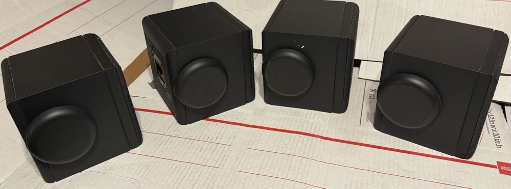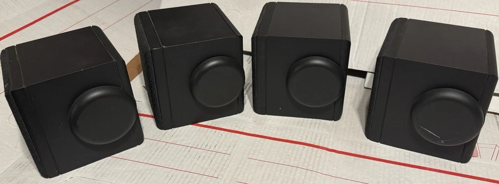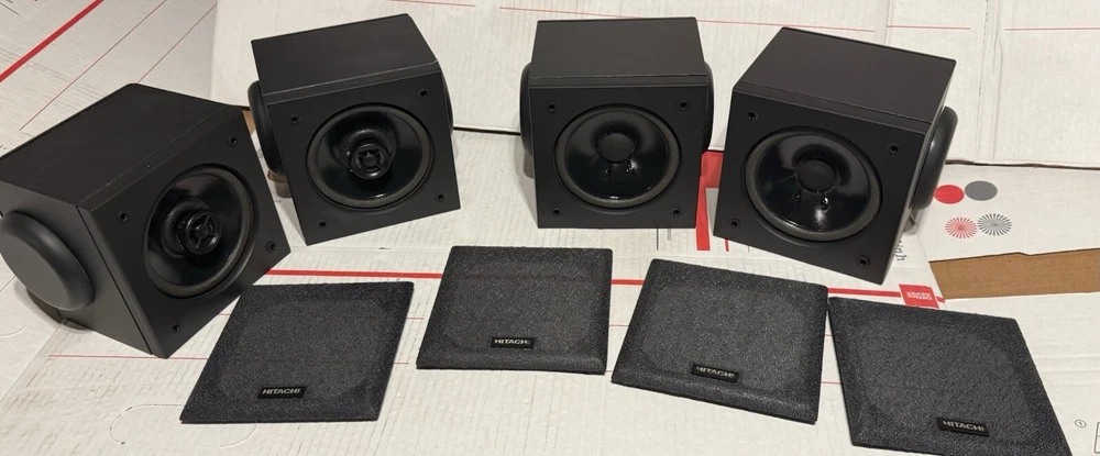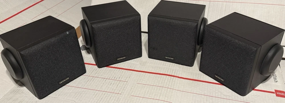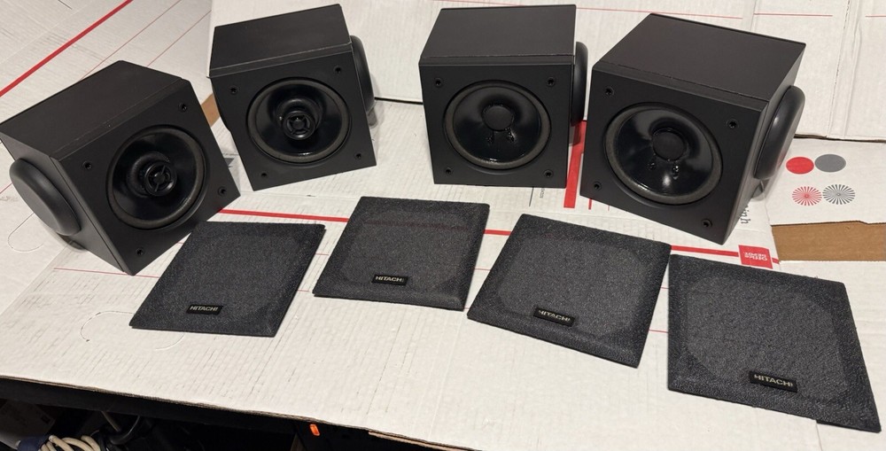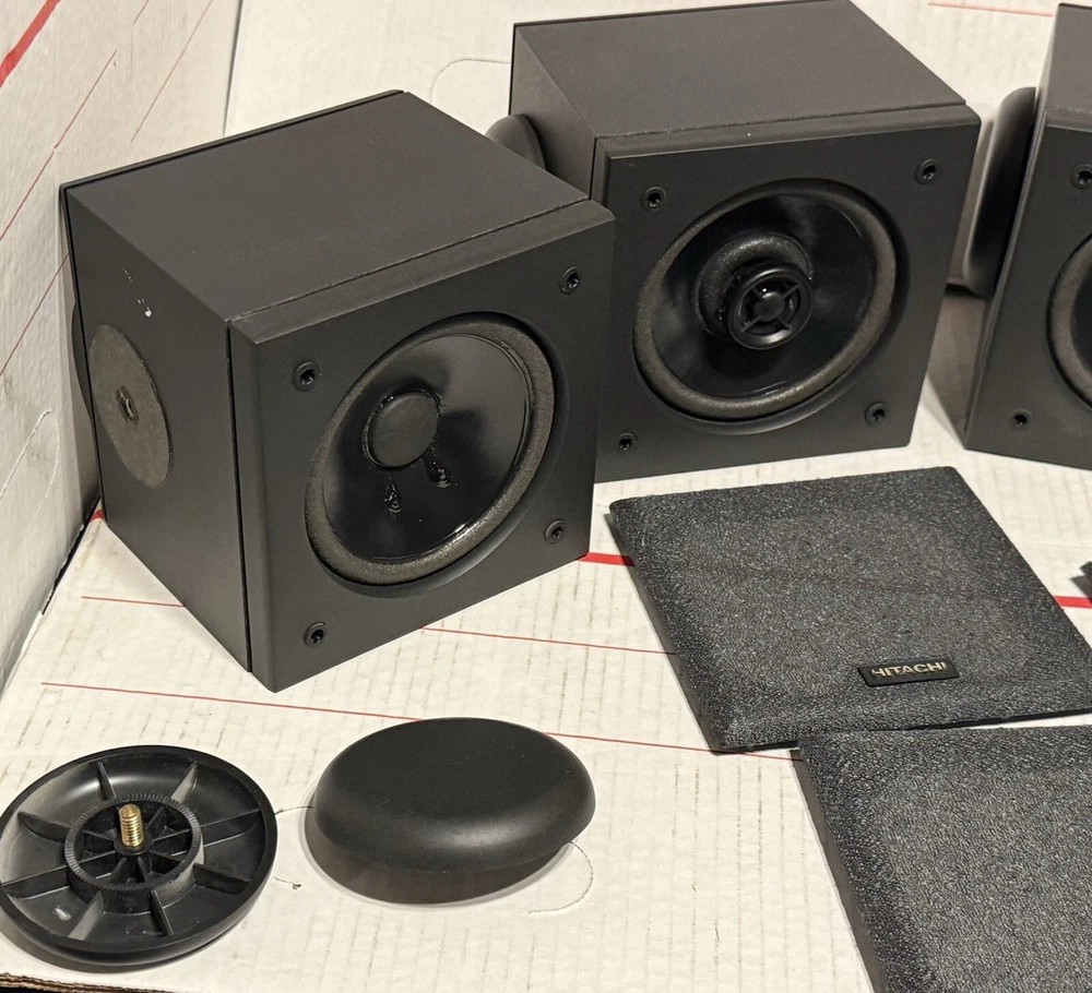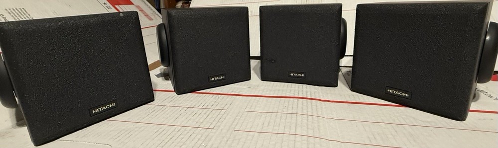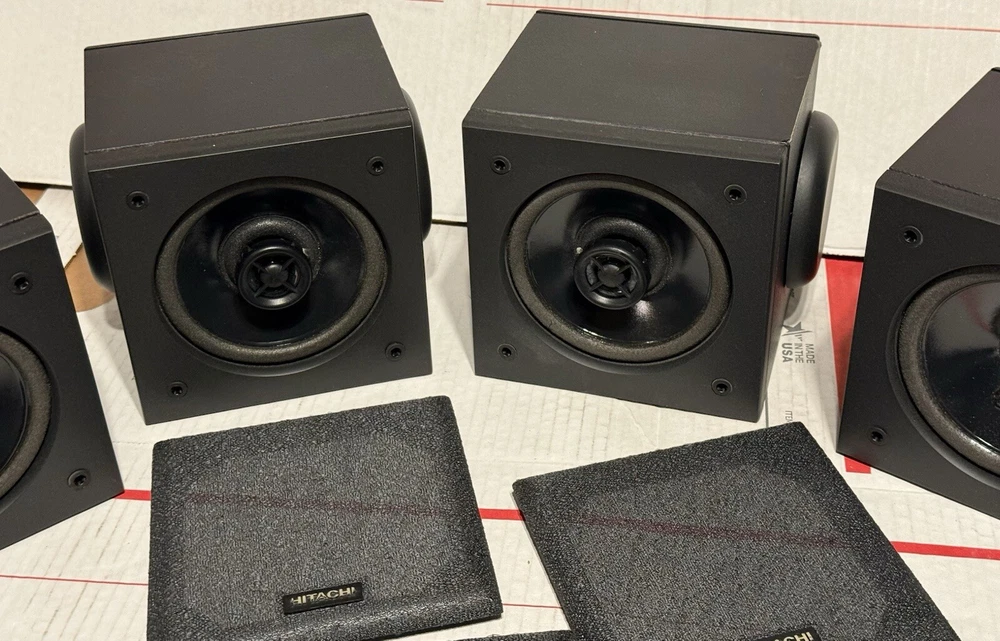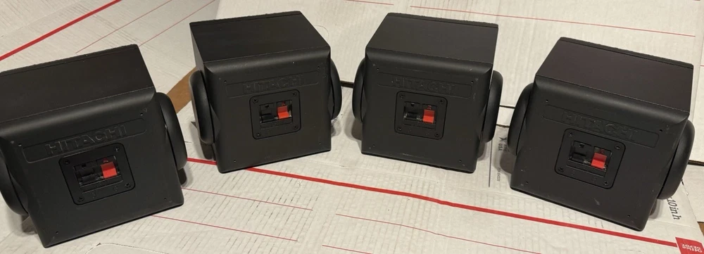 VINTAGE HITACHI SURROUND SOUND CUBE SPEAKERS HIFI SET OF 4 TESTED SOUND GREAT! THESE SPEAKERS ARE USED IN VERY GOOD CONDITION. THEY HAVE BEEN TESTED AND DO SOUND GREAT. THEY HAVE VERY MINOR SCUFFS. OTHER THEN THAT, THEY ARE IN VERY GOOD CONDITION.) (PLEASE SEE ALL PHOTOS) OTHERWISE IN VERY GOOD CONDITION. (PLEASE SEE ALL PHOTOS) THIS SET COMES WITH EVERYTHING PICTURED. THESE SPEAKERS WERE RARELY USED AND ARE IN VERY GOOD CONDITION. THEY TRULY SOUND GREAT WITH A TON OF DETAIL FOR ANY ONE WHO ENJOYS SURROUND SOUND WITH THEIR MOVIES AND TV AS WELL AS ANY AUDIOPHILE OR MUSIC LOVER. WHETHER THE SOURCE BE FROM A TURNTABLE, OR CD PLAYER RUNNING THROUGH YOUR RECEIVER, OR BLU-RAY/DVD PLAYER, THESE SPEAKERS TRULLY SOUND AMAZING. SHIPPING TO LOWER 48 STATES ONLY. CANNOT SHIP TO ALASKA, HAWAII, OR PUERTO RICO. I will get this delivered to you ASAP. It will be shipped out same day or next business day. Thanks for looking!!! Please take a look at my other Auction listings:) Have a great day:)