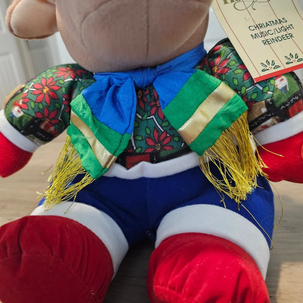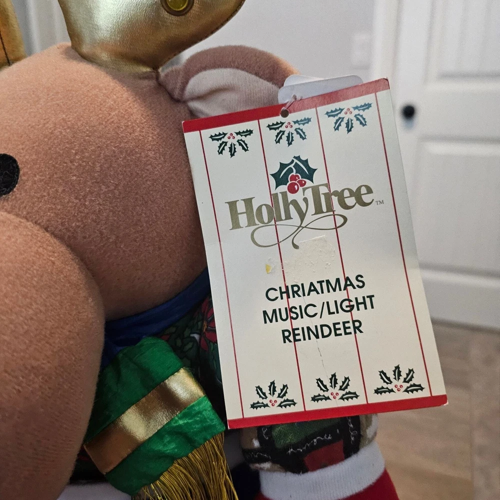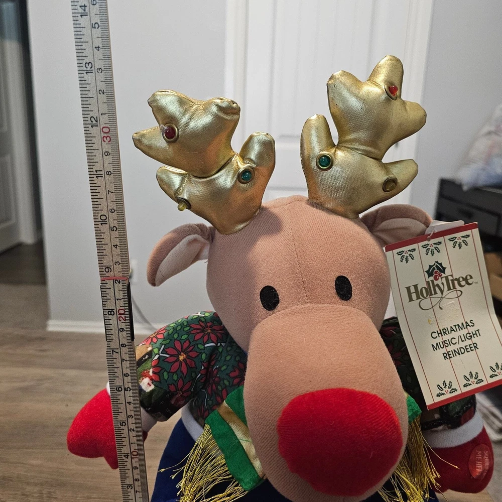 Vintage Holly Tree Christmas Music/ Light Reindeer Toy 13" 8+ Songs WORKS 80s Great Condition with original tags! -Plays over 8 Christmas songs and light ups on the antlers -Reindeer wearing Christmas clothes and plays music and lights up -Battery-operated , does not come with batteries. Measurements in photos. Same day / next day shipping Offers accepted Like for price drops and deals Bundle 2 items or more and save! Thank you! 1lb