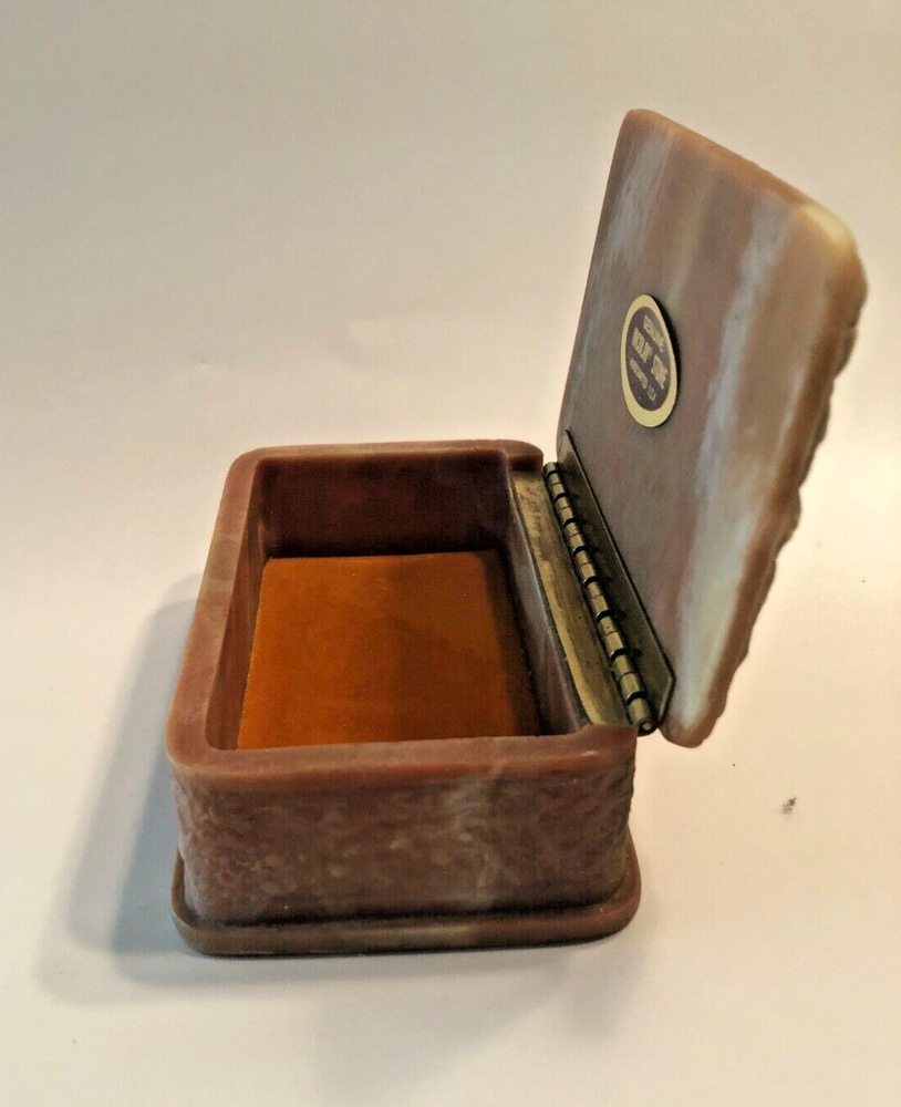 Crafted with care, this Vintage Incolay Stone Jewelry Box embodies the elegance of the Victorian era. The matte brown finish complements its classic cameo design, offering a timeless appeal for all occasions. Small yet sophisticated, this trinket box measures 5 inches in length, making it an ideal keepsake for your cherished jewelry or mementos.Proudly made in the United States, the box is a part of the exclusive Keepsake Boxes collection, renowned for its quality and style. It arrives neatly boxed, ensuring it remains pristine over time. With its durable stone construction, this piece is not just a container but a testament to the craftsmanship of bygone days.