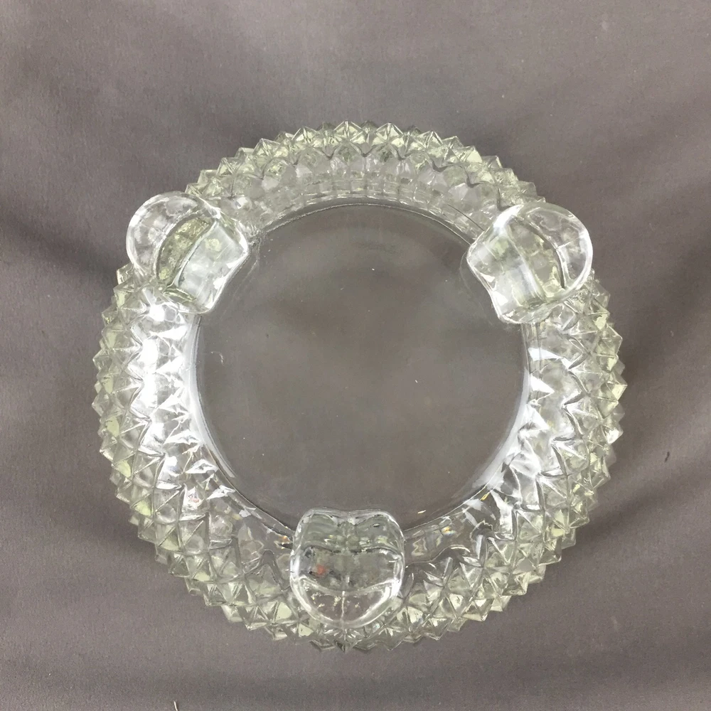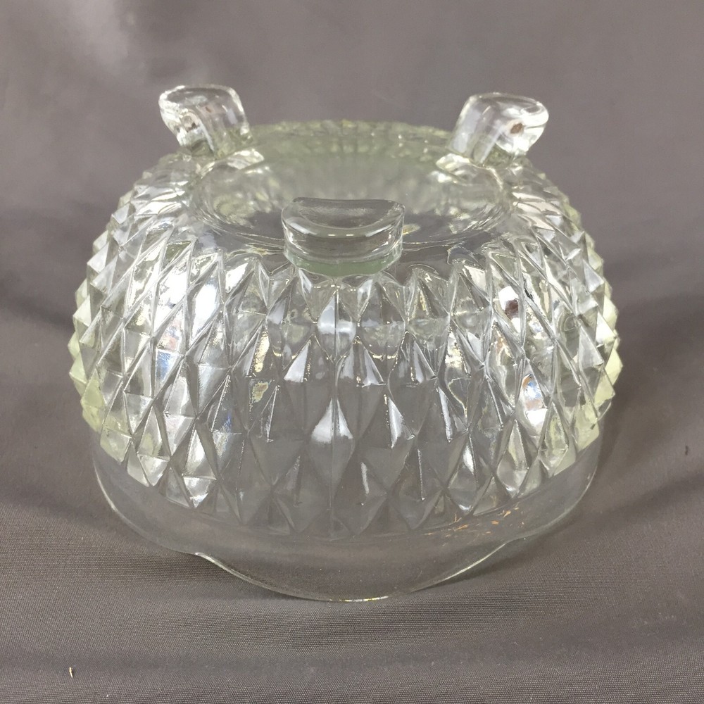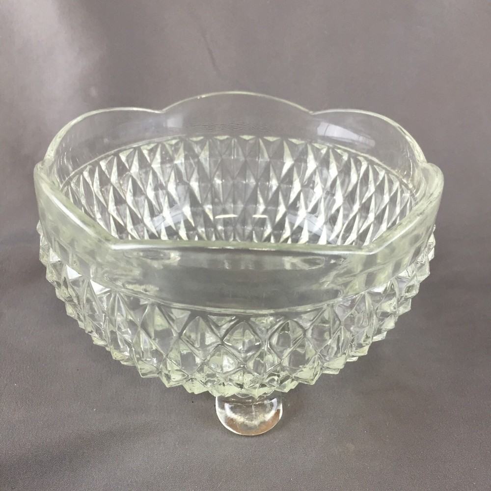 Vintage Indiana Glass Diamond Point Clear Bon Bon Footed Round Candy Bowl Measures: 3" tall and 5" diameter No breaks, cracks or chips