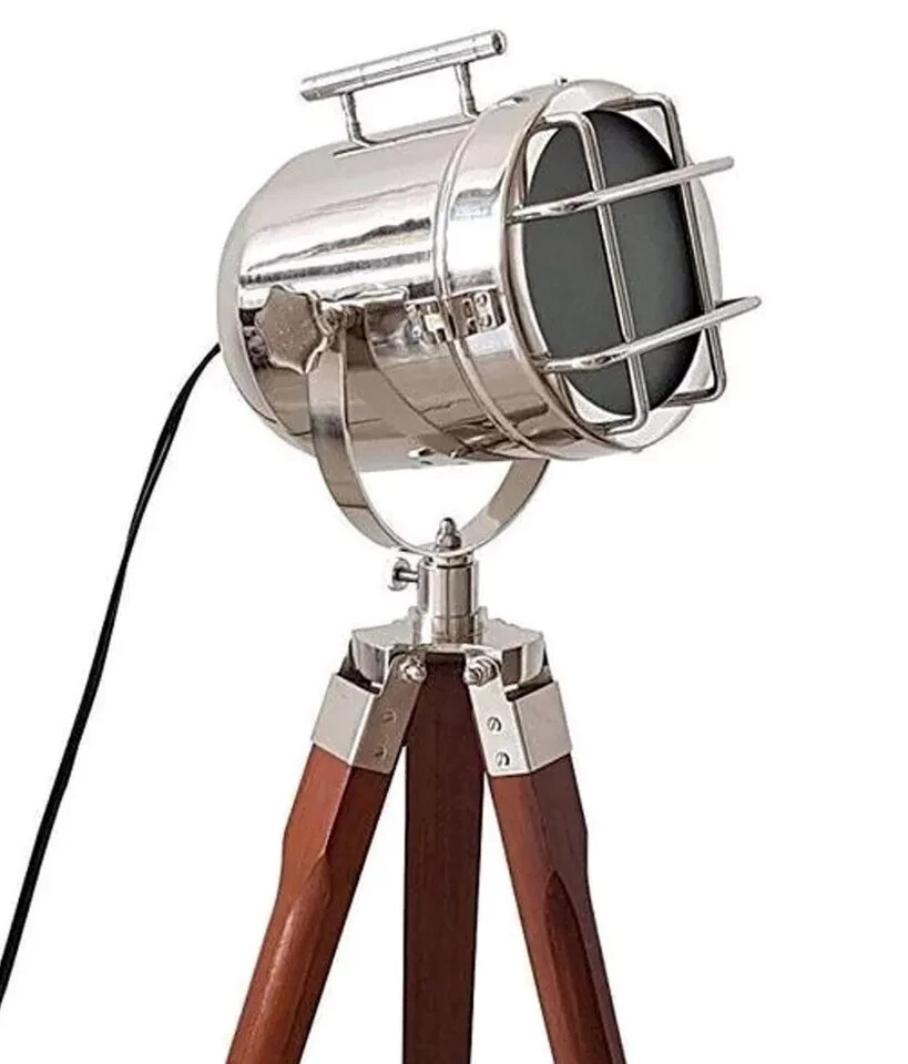 Modern Designer Tripod Floor Lamp with Retro Nautical Searchlight Style