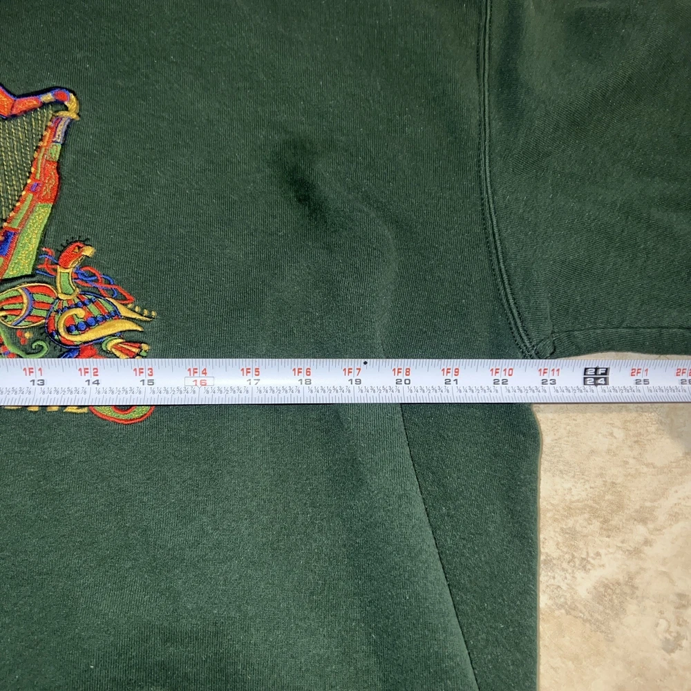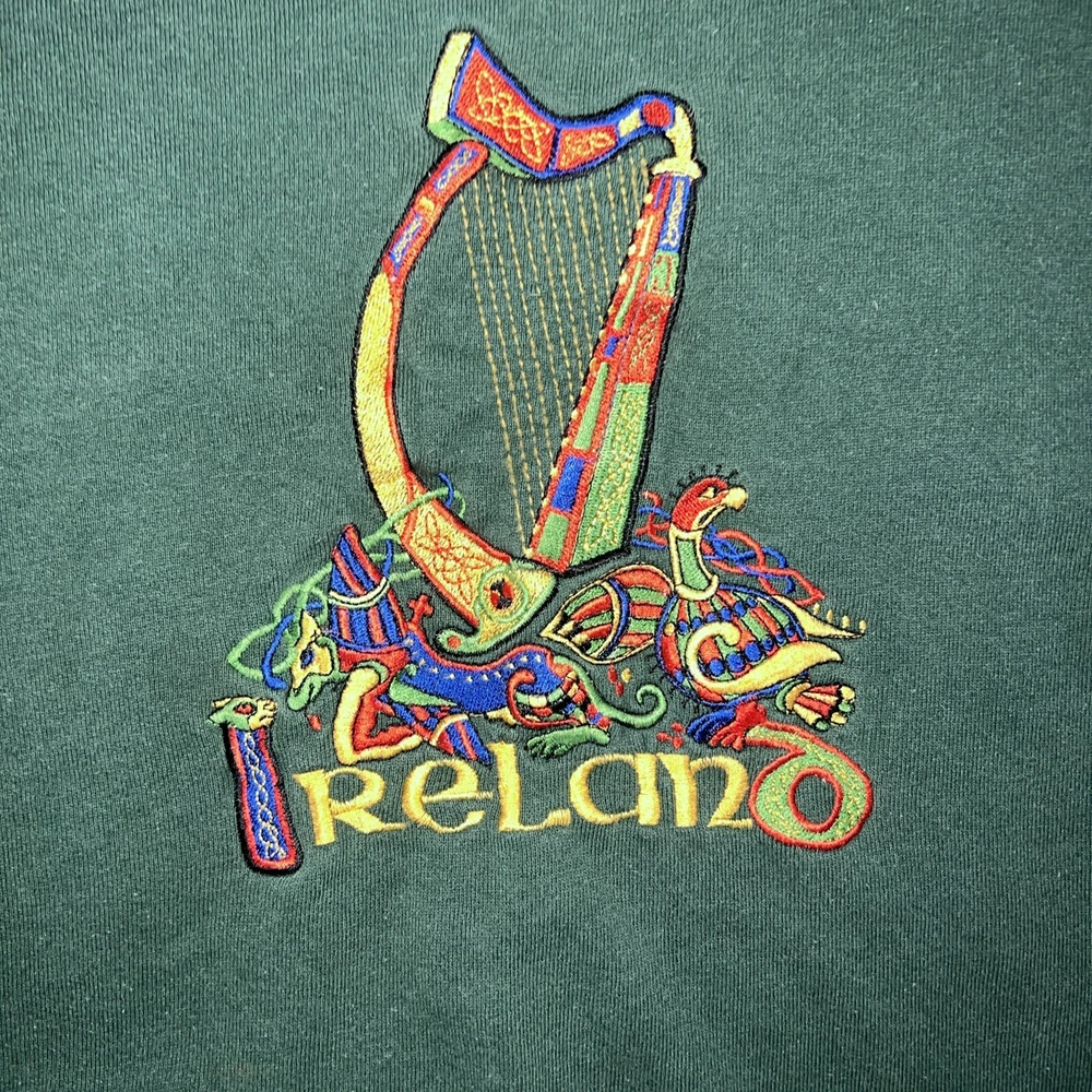 This vintage Ireland sweatshirt is a must-have for any fashion-savvy man. The green cotton blend fleece fabric is comfortable and perfect for all seasons. The pullover style features a crew neck and long sleeves, making it a great addition to any wardrobe. The sweatshirt has an embroidered design with no graphic print and is machine washable for easy care. It is a regular fit, size XL, and has a solid pattern. This sweatshirt is perfect for anyone who loves the USA theme and is looking for a vintage piece to add to their collection.
