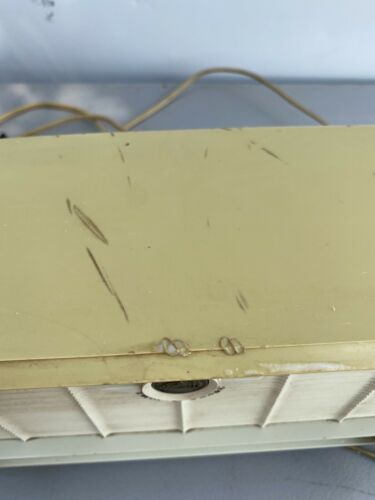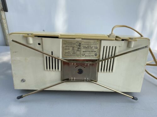 Radio has some cosmetic wearing shown in images. Powers on and volume works. Will need antenna. Push the volume nob to power on this radio. Measures: 12.5" long, 7.25" tall