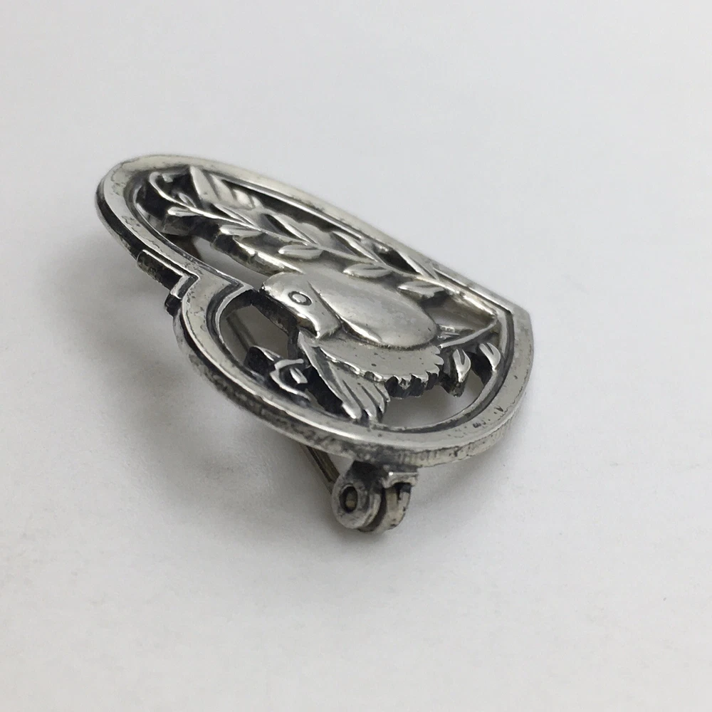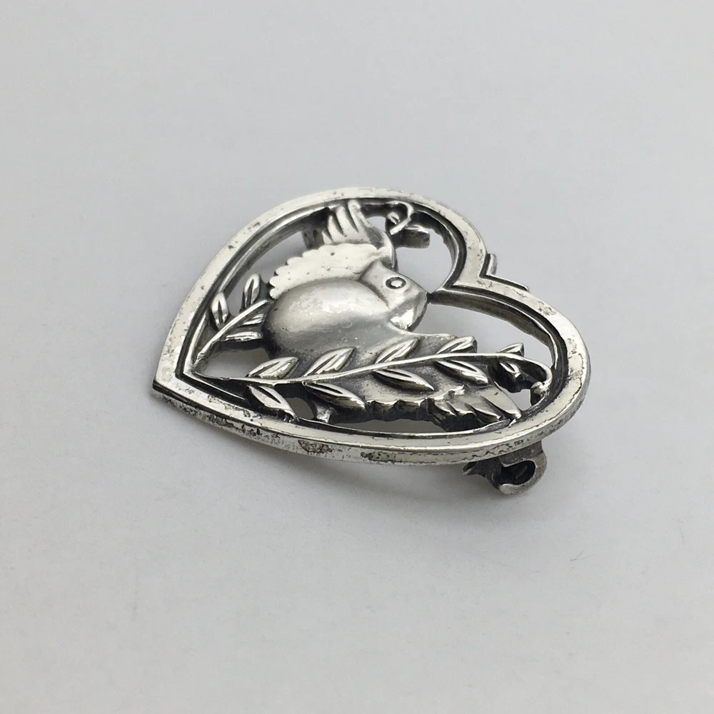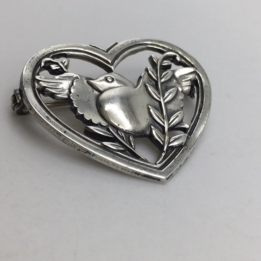 925 Sterling Silver Vintage Signed J Coro Bird with Peace Olive Branch in Heart Pin Broach #2878 Hand polished but this is a truly vintage piece and still holds tarnish and age. Measuring Tools not included. Combined Shipping! 1st item $4.59, each additional item is $1. Max shipping cost $10. Combine shipping for up to 7 days! We value YOU! Items are returnable and fully refundable! SilverSchark began as a hobby that grew into a business. We take old retired sterling silver jewelry and revitalize it to wearable condition. Utilizing an ultrasonic machine with sterling silver solution most items are restored to their original beauty. Occasionally scratches are buffed out and some minor repairs are made to bring these tired pieces back to life. Diamonds are always tested. If a piece is not stamped or is suspected of not being sterling silver, the item is acid tested for confirmation. Tests will always be listed in the description. We understand that patina is desired on vintage or antique items so some of the listings will not be cleaned and polished. The description of each listing will tell its tale of restoration. Combined shipping is always welcome! Just ask for an invoice if your cart doesn't look correct. Max shipping cost is $10 per shipment regardless of number of items!