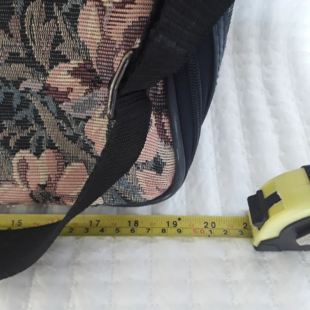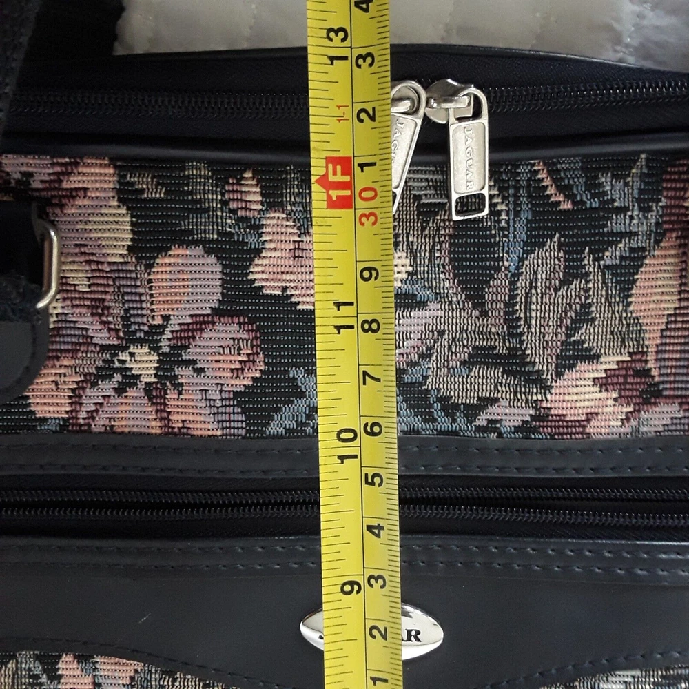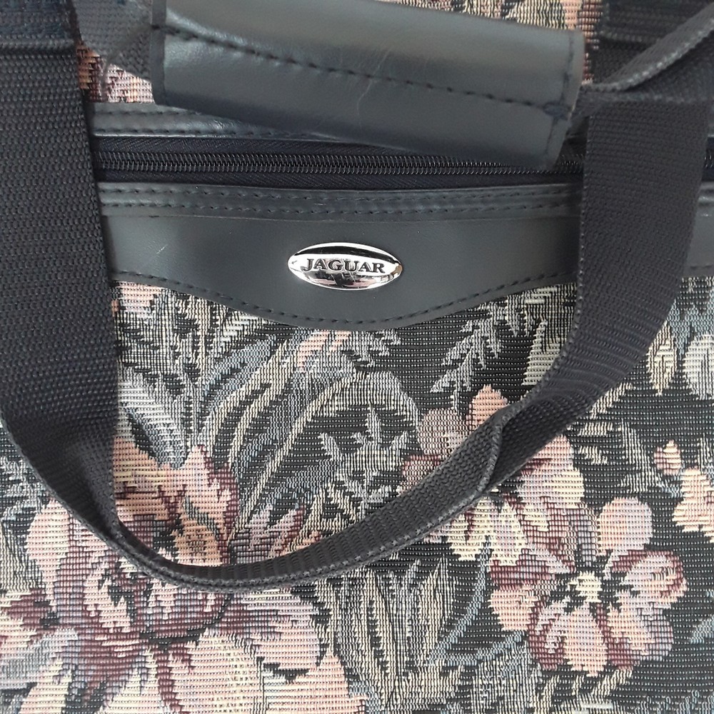 Jaguar Floral Tapestry Duffel Bag Carry On Luggage Navy Floral Vintage Used