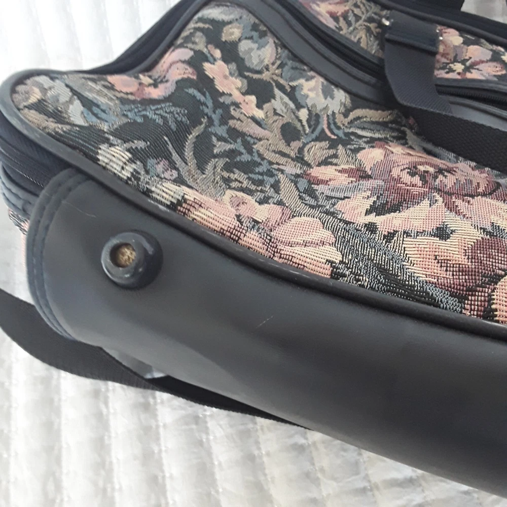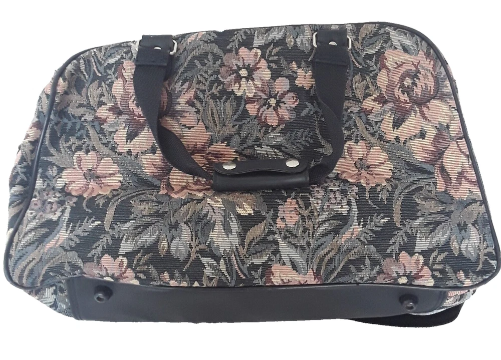 HomeVintage Jaguar Navy Floral Tapestry Duffel Bag Carry On Luggage