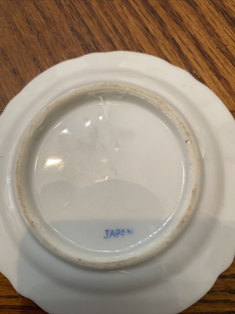 This vintage Japanese saucer features delicate pink and white roses set against a lavender border, with elegant gold trim adding a touch of luxury. The floral pattern is perfect for collectors or fans of all things botanical, and the saucer is an ideal addition to any tea set or dinnerware collection. Crafted from high-quality materials, this saucer is both beautiful and functional. It pairs perfectly with the matching cup or can be used on its own for a stylish touch to any table setting. Whether you're a collector or simply appreciate the beauty of vintage items, this floral saucer is sure to impress. Saucer in great condition. 3.5 inches in diameter. Thanks for looking and have a great day!!!