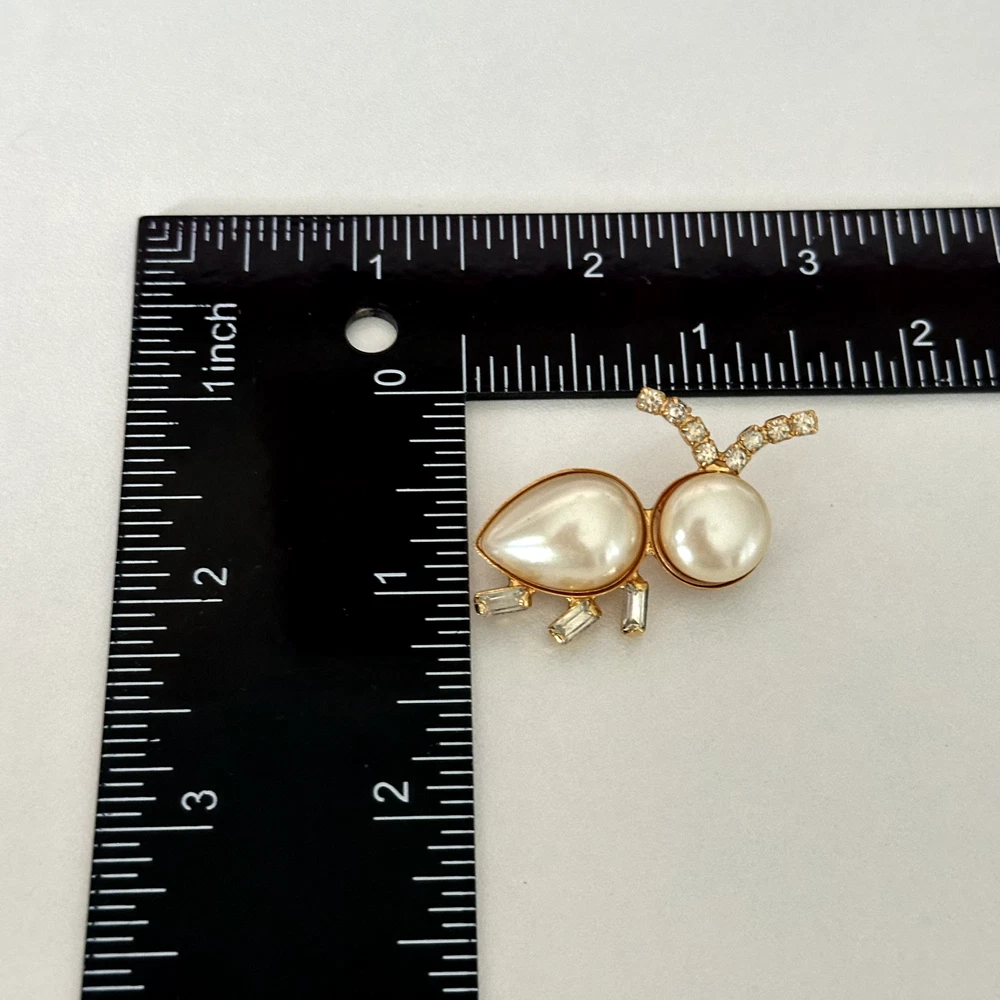 Vintage Jelly Belly Bug Insect Faux Pearl Rhinestone Gold Tone Brooch Pin Length: 1.5" Very good vintage condition. - Fast shipping, I ship the same or next business day! I also combine shipping. - Thank you so much for shopping with me and please check out my other jewelry listings, I post new pieces daily!