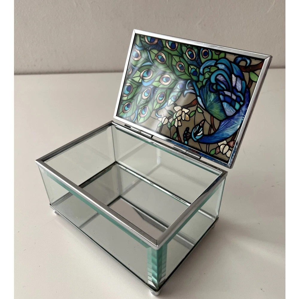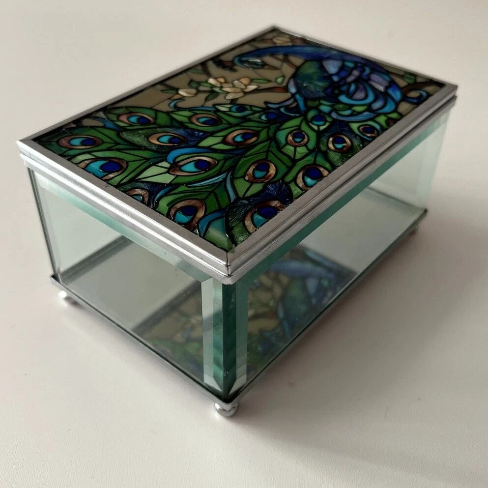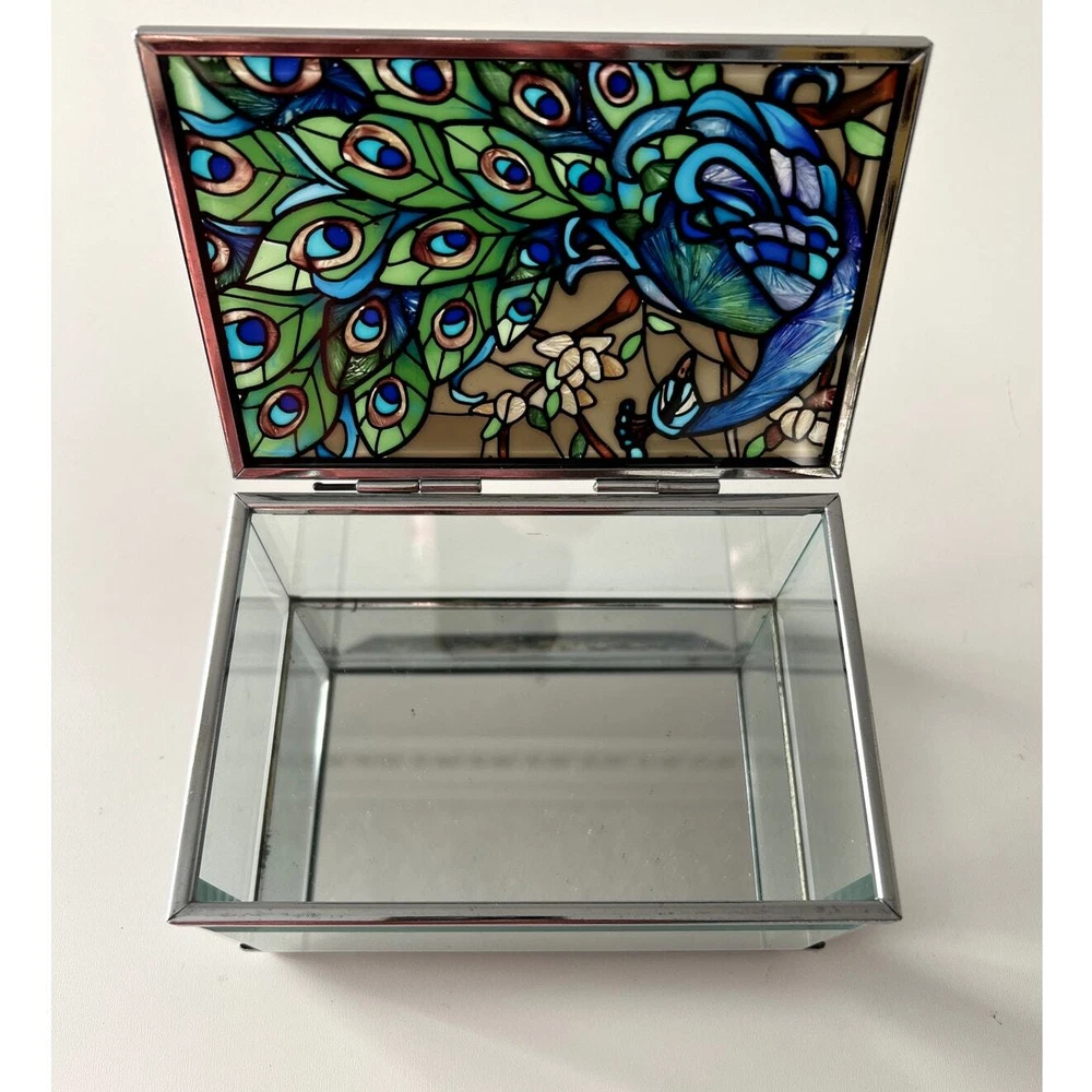 Hand painted. Like new. BLR 126 Peacock. Glass, metal and mirror base. 6" x 4" x 3".