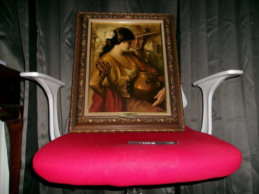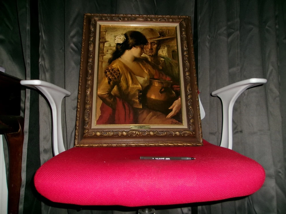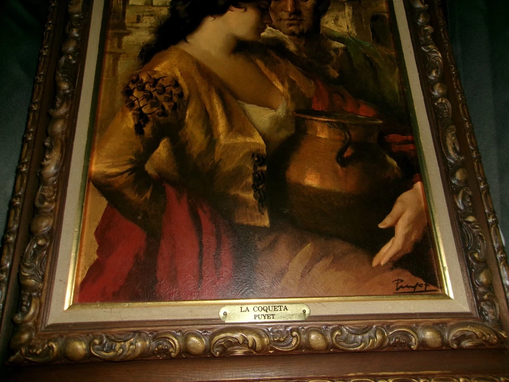 This vintage lithography print by Jose Puyet features a beautiful image of a girl wearing a traditional Spanish outfit, titled "La Coqueta Woman Dress." The piece is framed and measures 20 inches in height and 17 inches in width. The artist's impressionism style beautifully captures the essence of the subject, making it a great addition to any art collection. The print is produced using lithography and is made of paper board material. The item is a single piece and is sold as such. It originates from the USA and has a Hispanic culture influence. The print is perfect for those who appreciate art and fashion, and it would make a great gift for any art enthusiast.