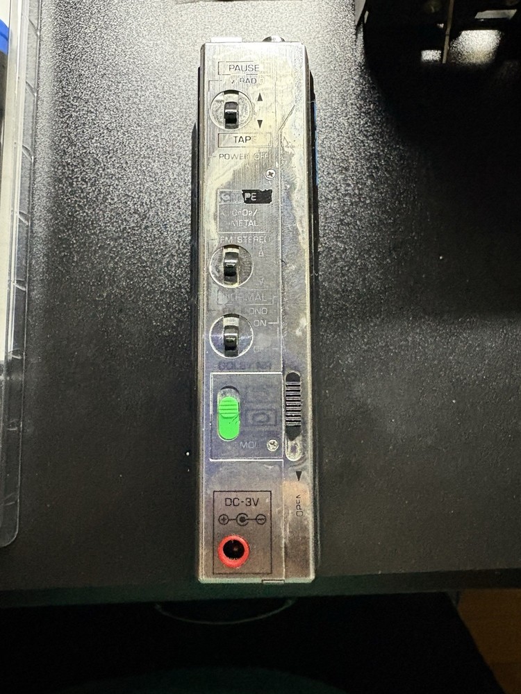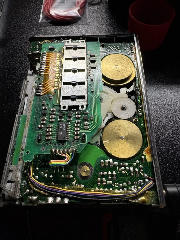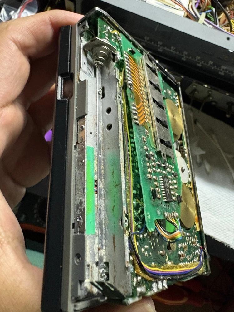 Cool looking walkman with 5 band equalizer. Very similar to aiwa hs-u07 in terms of pcb & mechanism layout. Getting rid of players in my backlog currently & I don’t have time to do as many repairs as I used to. This one suffered from battery corrosion. On the surface it doesn’t seem too bad but It has definitely spread to the motor pcb as the motor does not move. Red power light turns on when pressing all buttons as well as switching it to radio mode. Some corrosion on the eq pcb but power goes through the circuit so no issues on that end despite the condition. Cleaned the belt gunk as well as some of the leads to see if I can get it working without much work. Thank you for reading.
