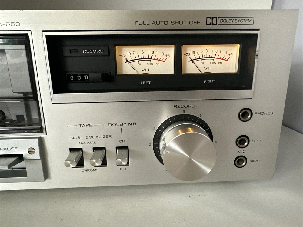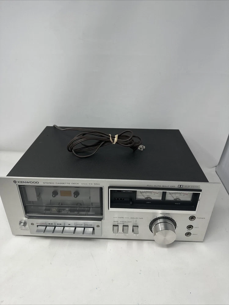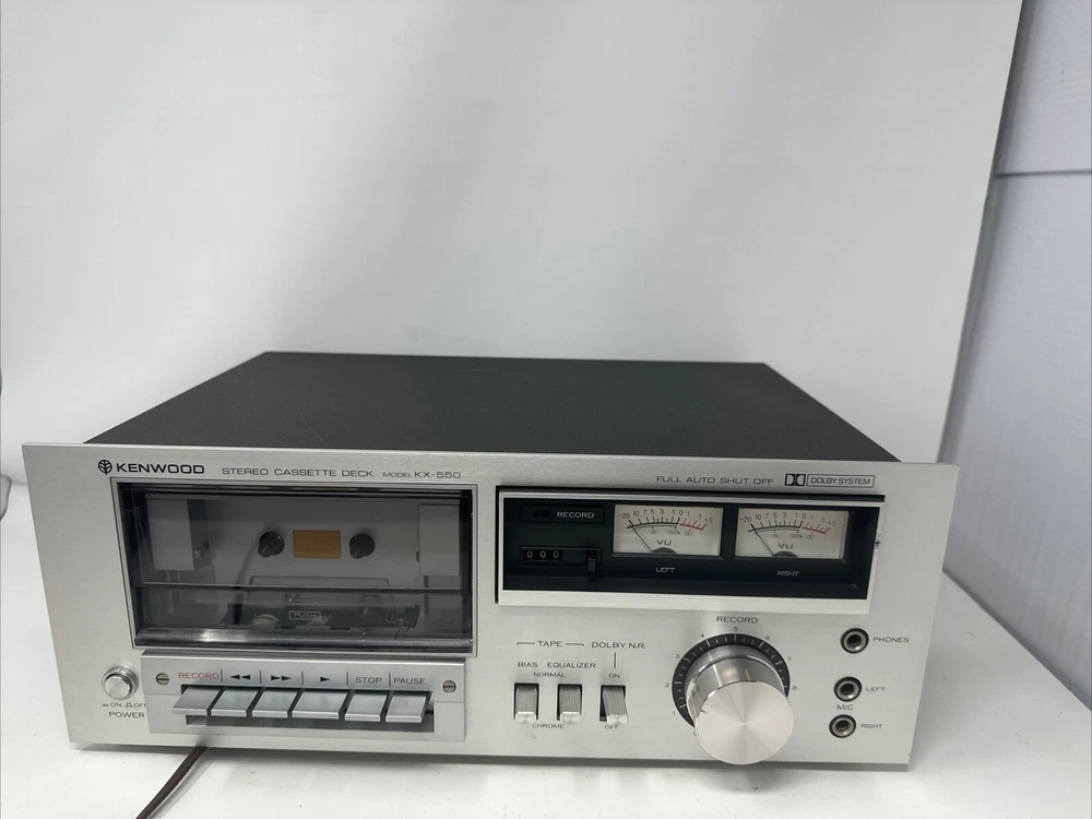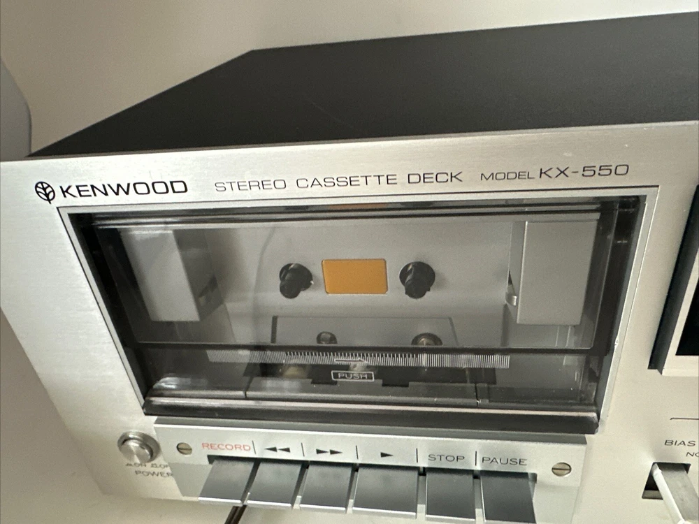 Vintage Kenwood Stereo Cassette Deck Model KX-550 Made In Japan. Tested & Works cosmetic scratches and discoloration on the surface. Please check the pictures for details and conditions