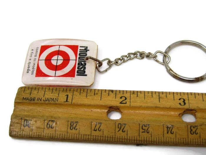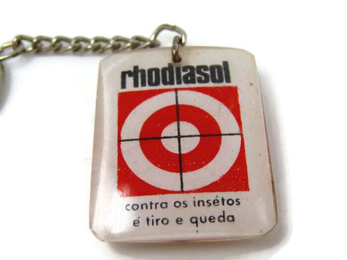 Vintage Keychain: Foreign Brazil Rhodiasol Insecticide Bug Killer (Please see pictures for condition, many of these vintage keychains have oxidation and wear) .
