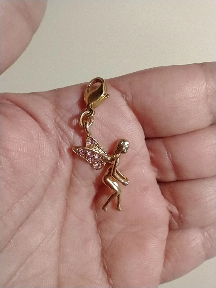 Please see images for size and condition description. Vintage Kirk's Folly gold tone charm with pink crystal wings. Unsigned. Retired. No missing stones and no verdigris. Lobster clasp is in good working order. Great to add on a charm bracelet or wear on a necklace. As is. Thanks!