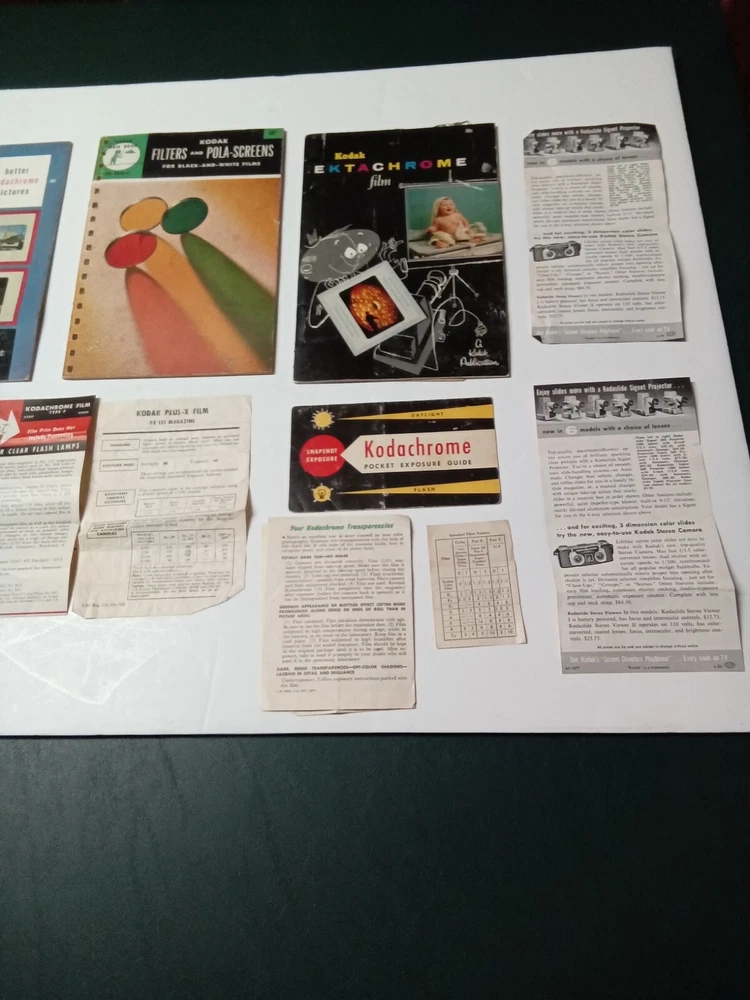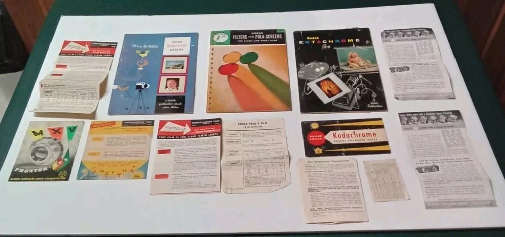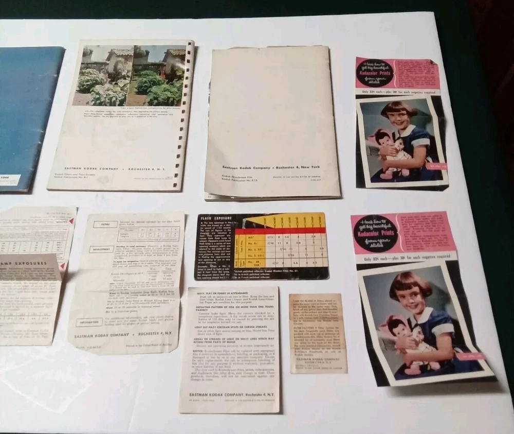 These vintage Kodak booklets are must-have for any photography enthusiast. Filled with detailed instructions on how to use Kodachrome films and accompanying papers, this manual is a valuable addition to any collection. The booklet is specifically designed for use with Kodak cameras and is a great resource for those looking to learn more about film photography. The manuals are in great shape and have been well-preserved, making them an ideal choice for collectors and enthusiasts alike. With its comprehensive instructions and detailed illustrations, these booklets are sure to provide hours of enjoyment and education. See photos for details.
