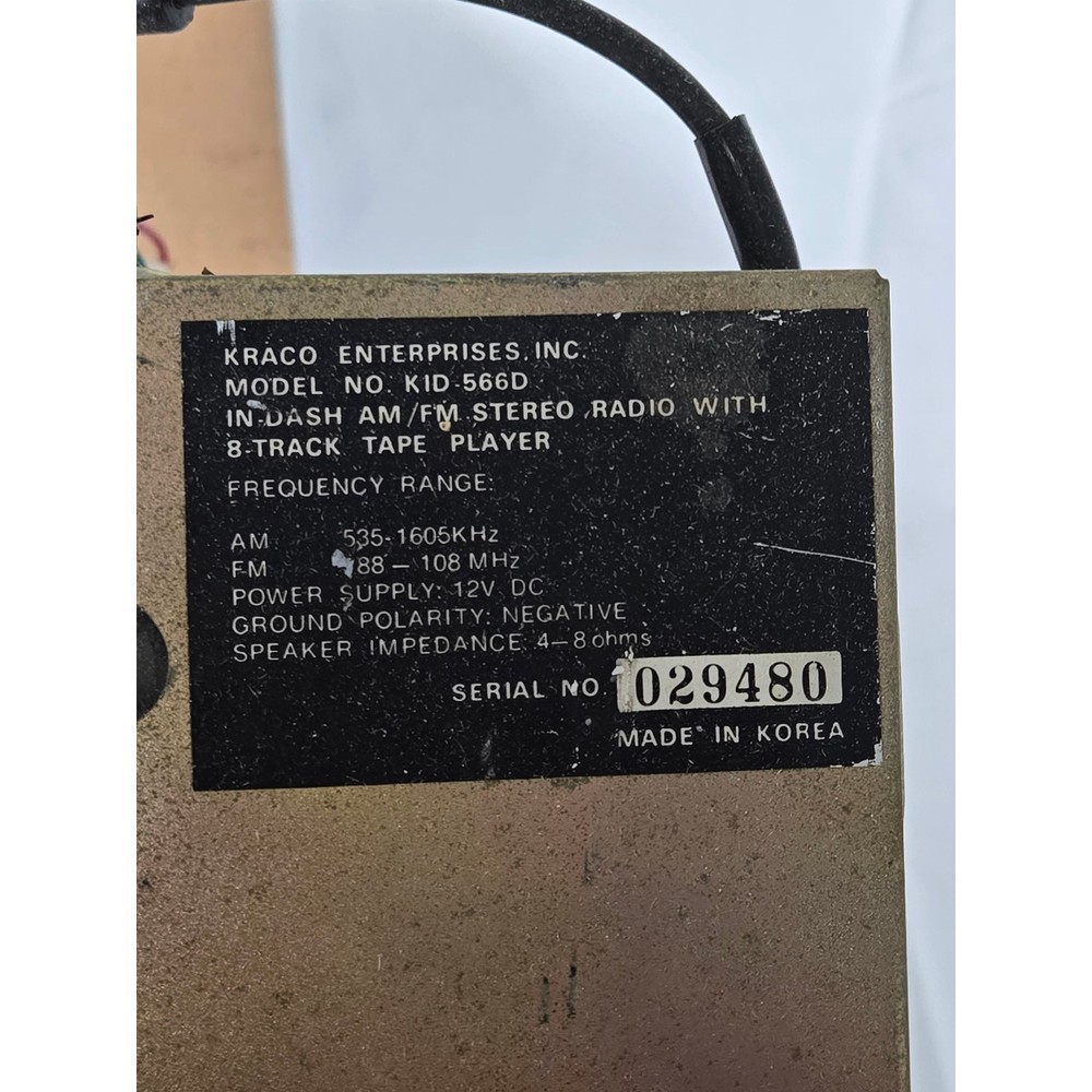 Vintage Kraco KID-566D AM/FM Stereo Radio with 8-Track Tape Player